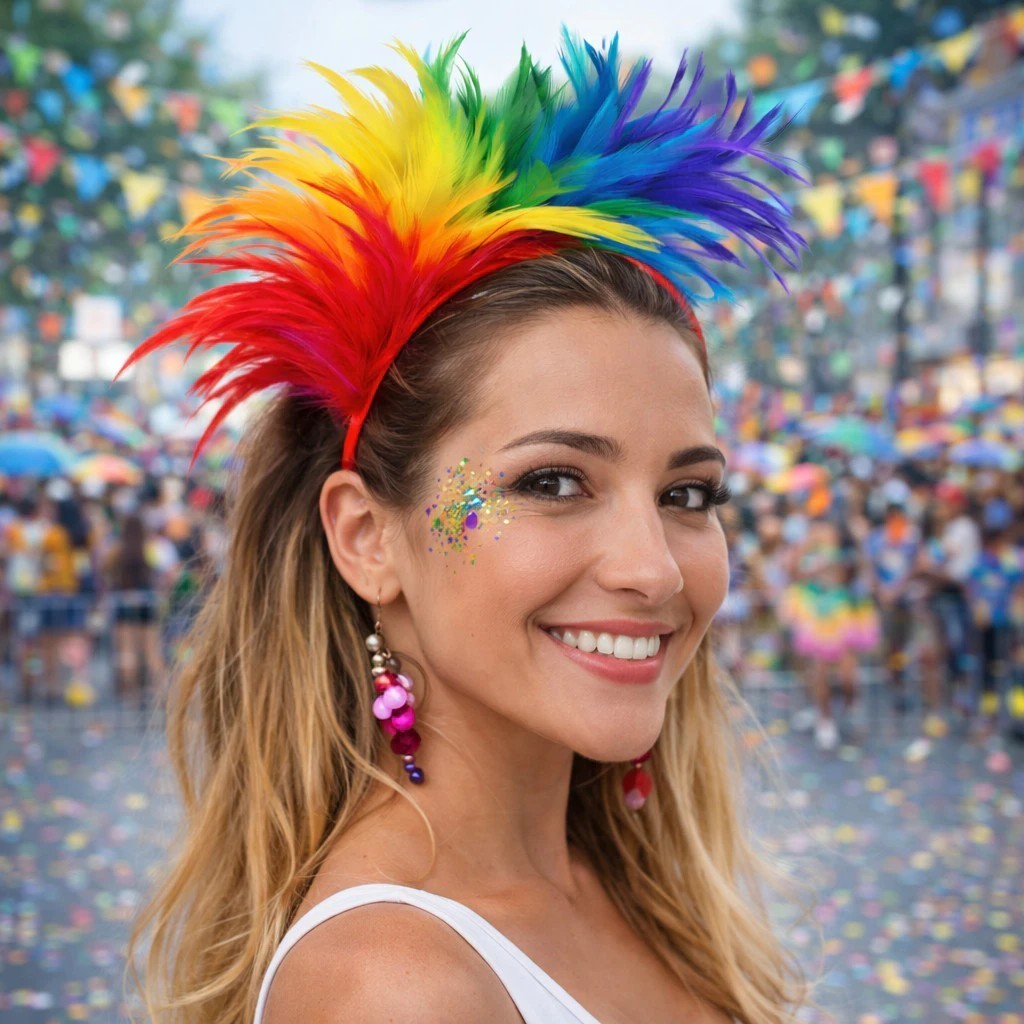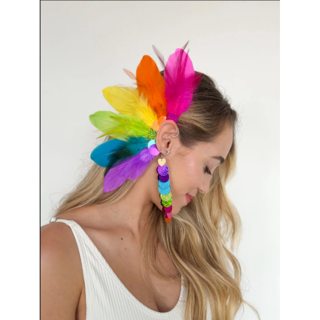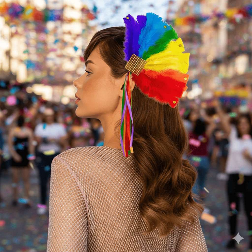 Acessório de Cabeça com Plumas Coloridas – Estilo Carnaval & Festival