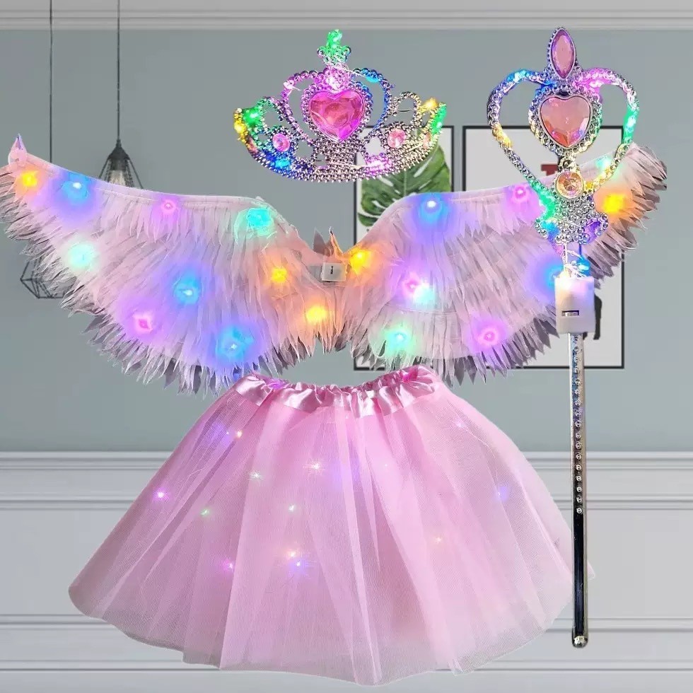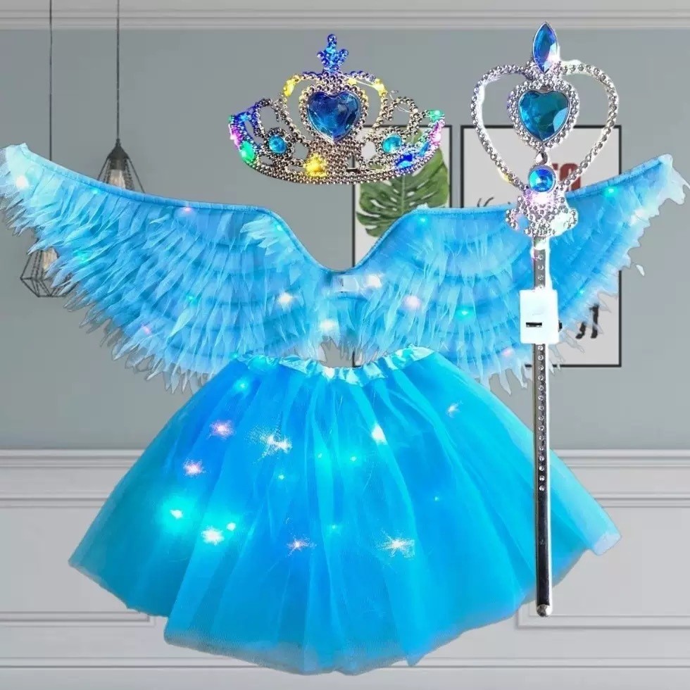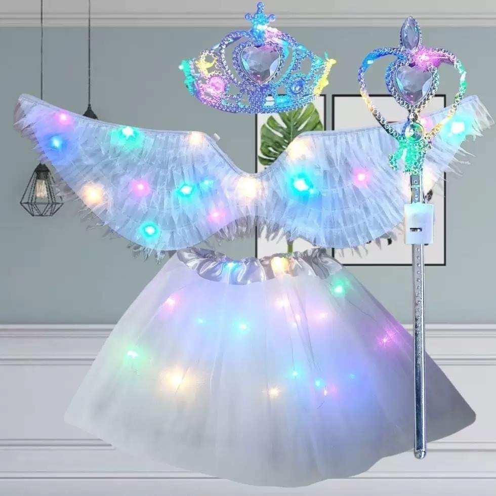Fantasia Fada Borboleta com Asa LED Pisca Varinha e Tiara Adulto e Infantil Festa de Carnaval