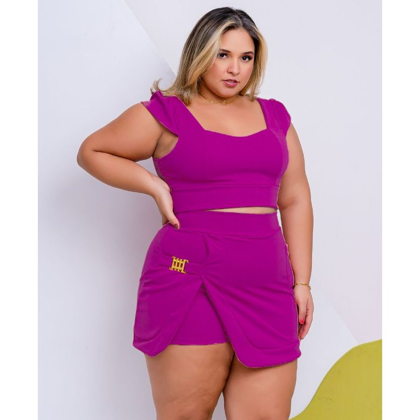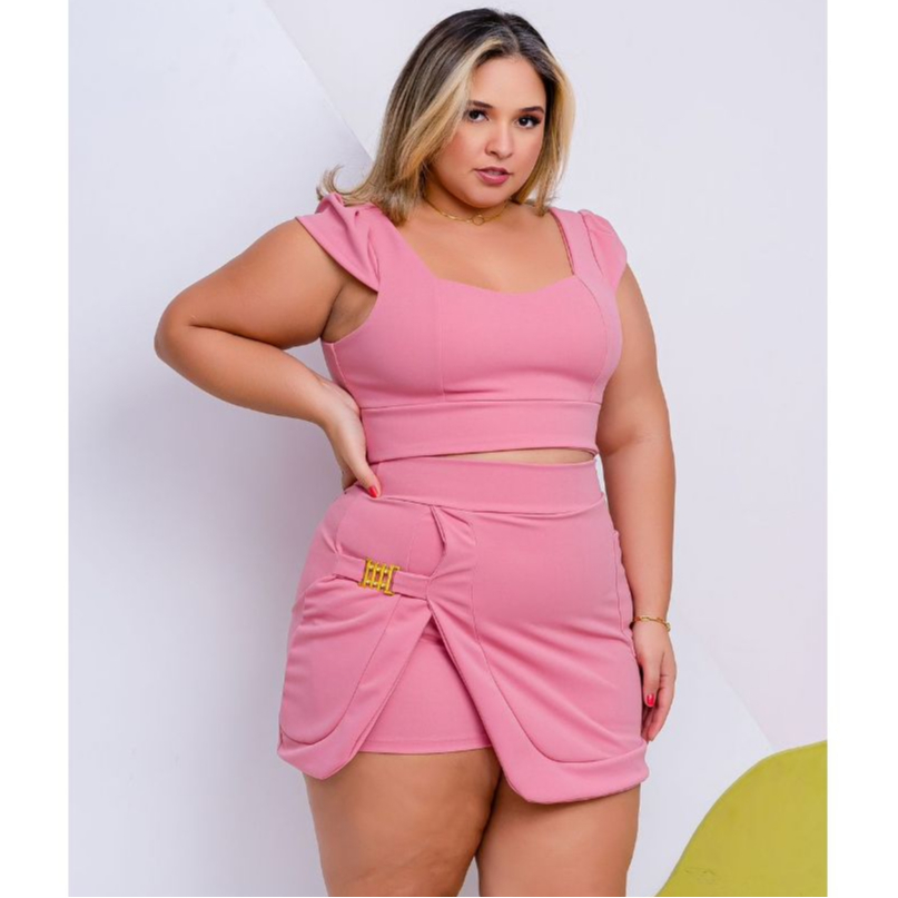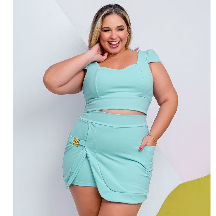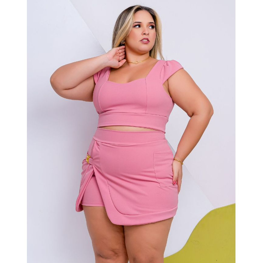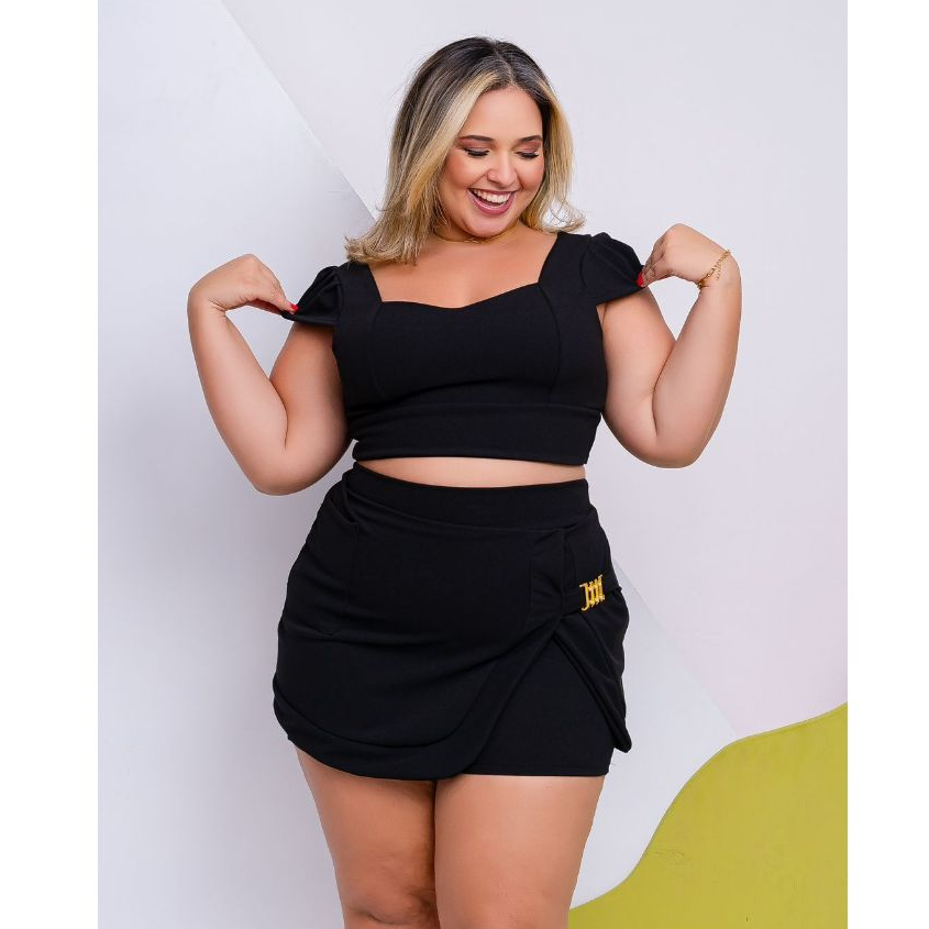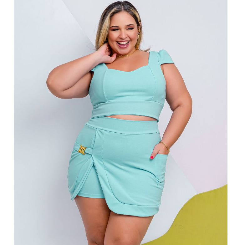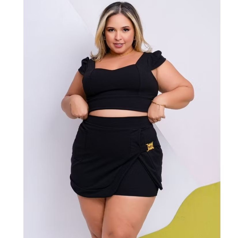 Conjunto Plus Size Feminino Short Saia+Cropped Festa Tam Único 44 ao 48