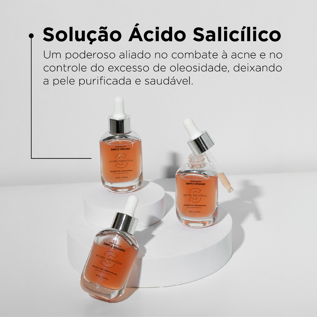 Sérum Solução Ácido Salicílico Controla Oleosidade Elasticidade Espinhas e Cravos Simple Organic