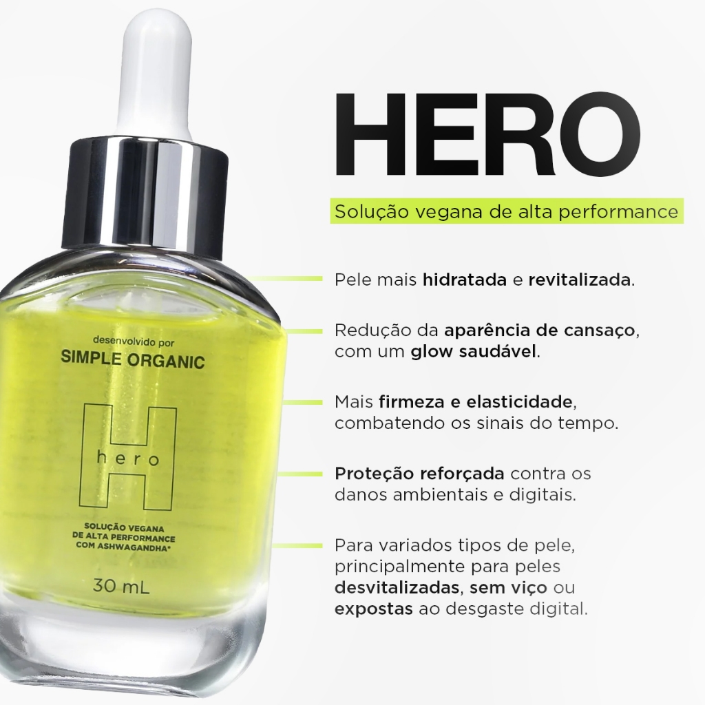 Sérum Hero Solução Ashwagandha Facial 30ml Simple Organic
