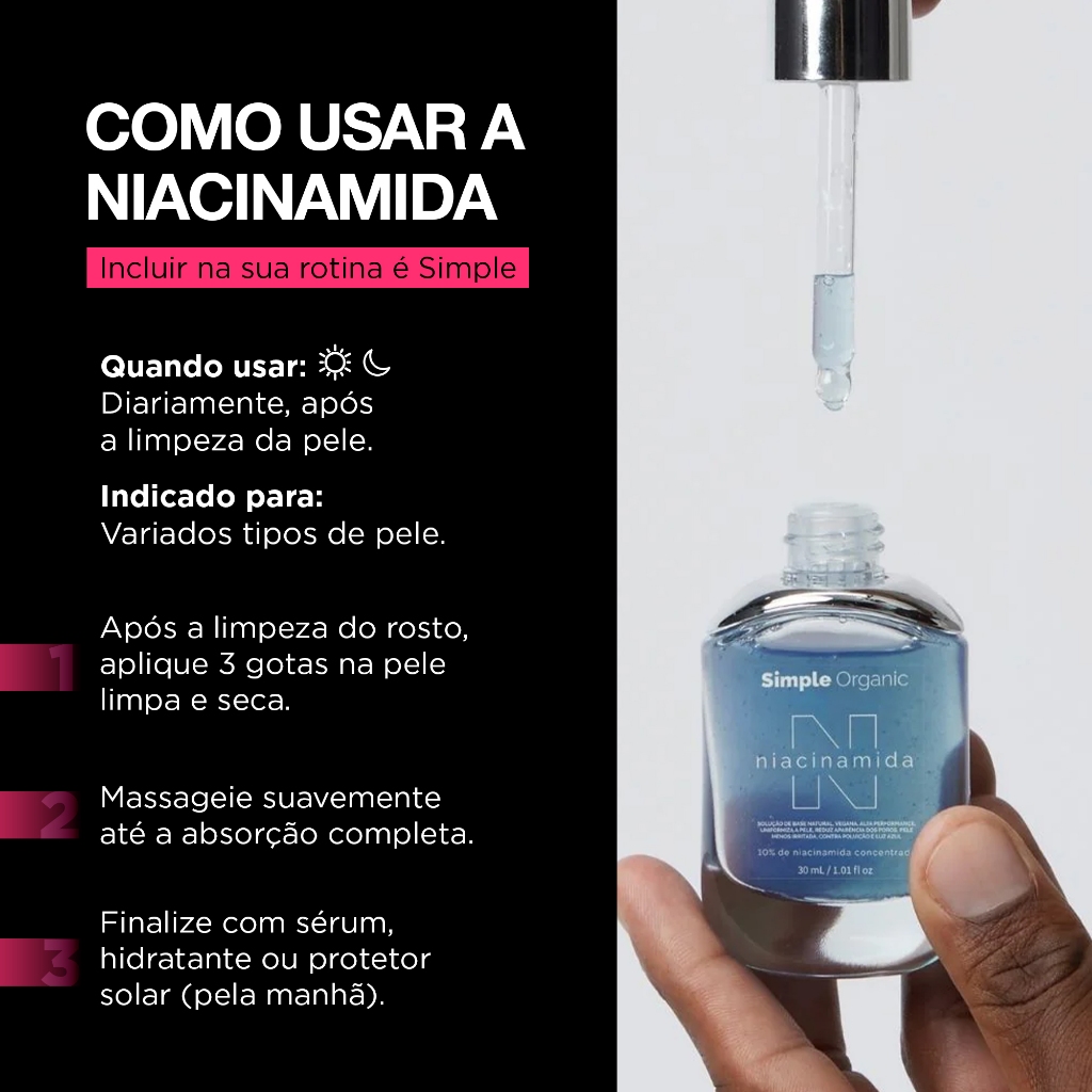 Kit 2 Sérum Niacinamida Solução Facial Skin Care Controla Oleosidade, Reduz Poros Simple Organic