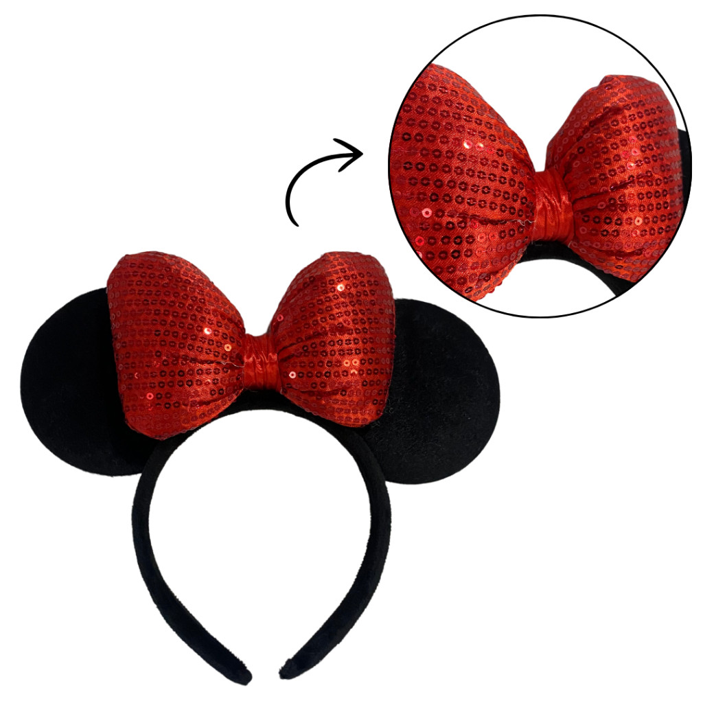 Kit Fantasia Minnie Infantil Saia Tule Vermelha com Arquinho