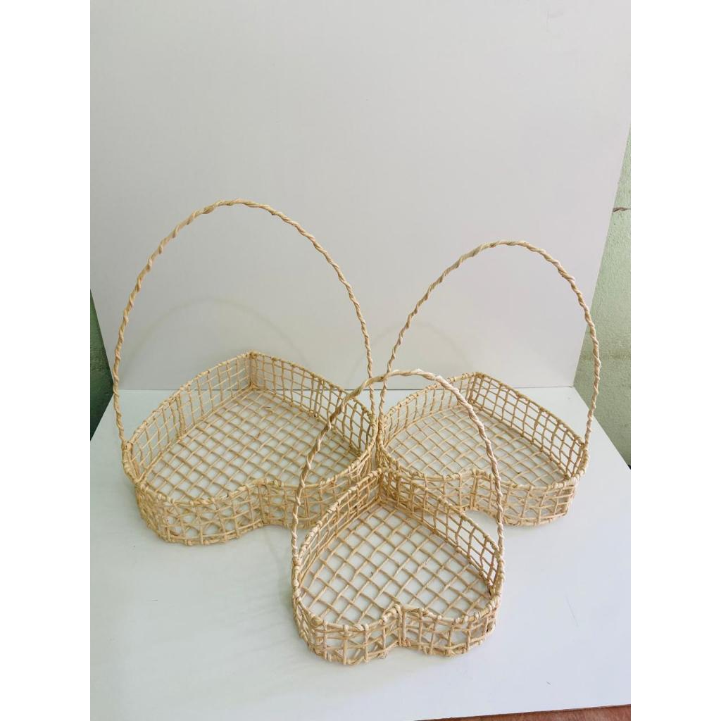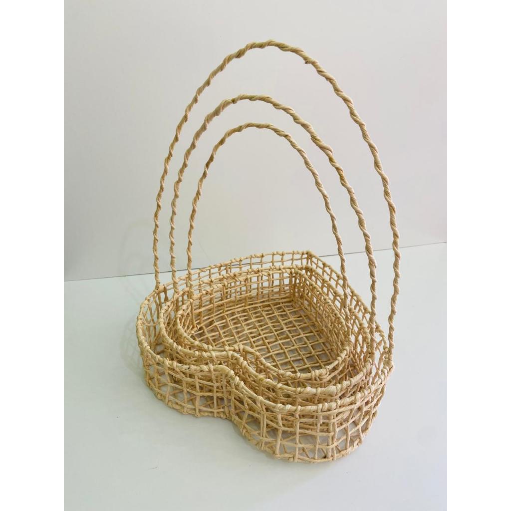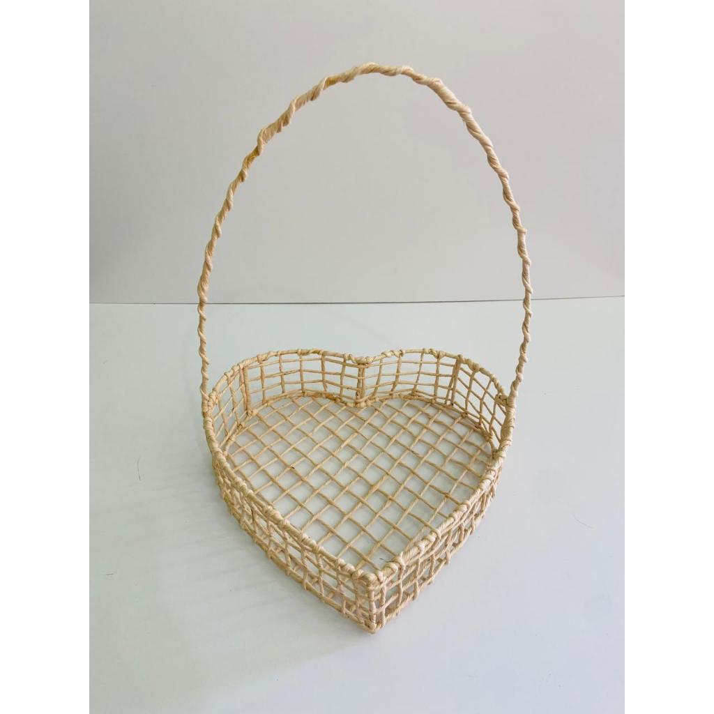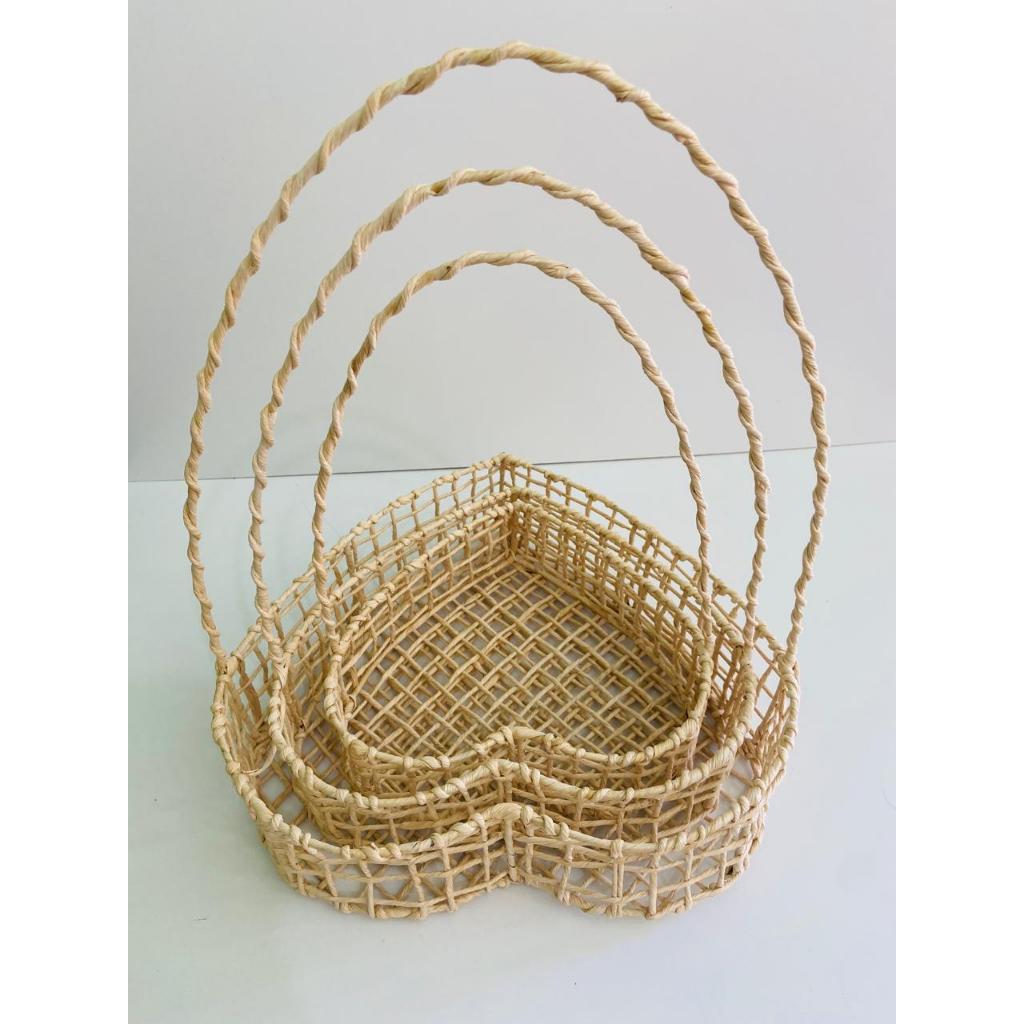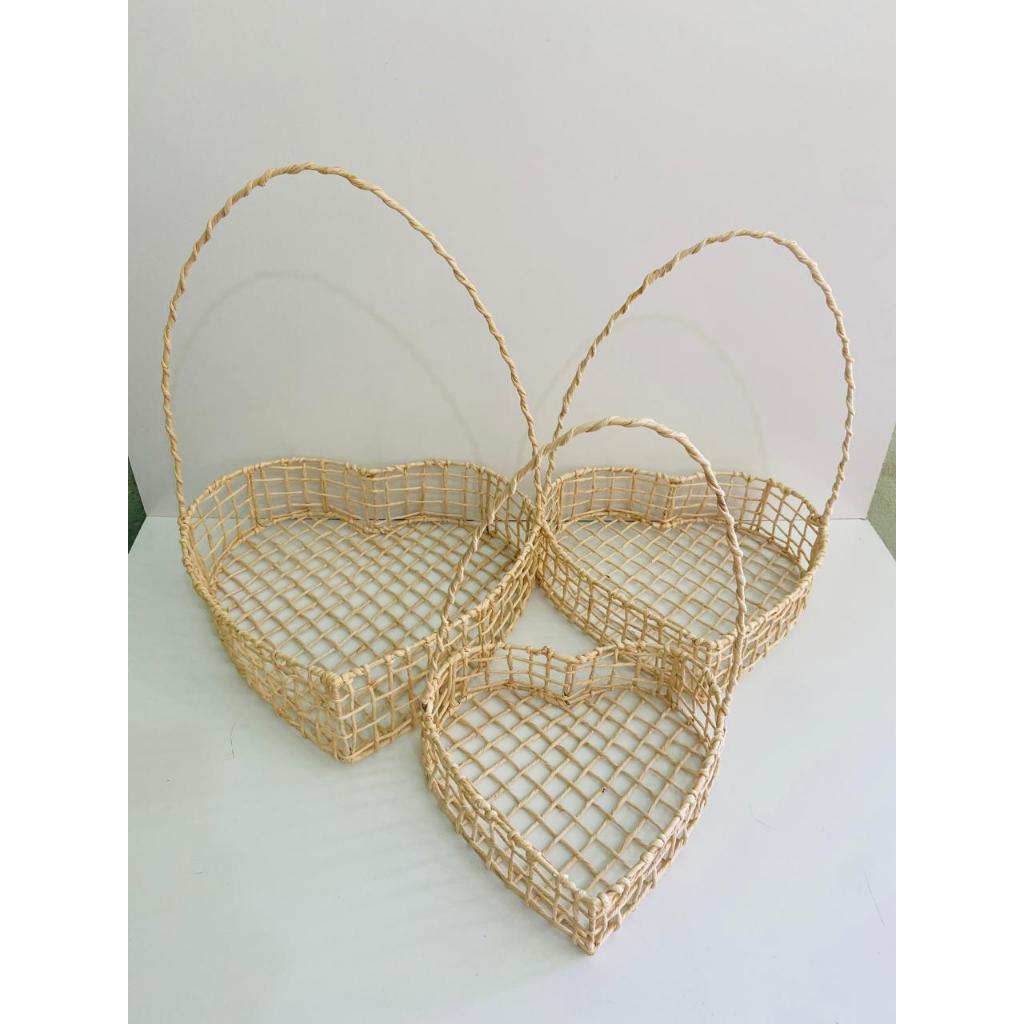 Kit 3 Cestas Coração Palha de Milho P+M+G 🎁 Presente Artesanal Chocolate Páscoa Natal