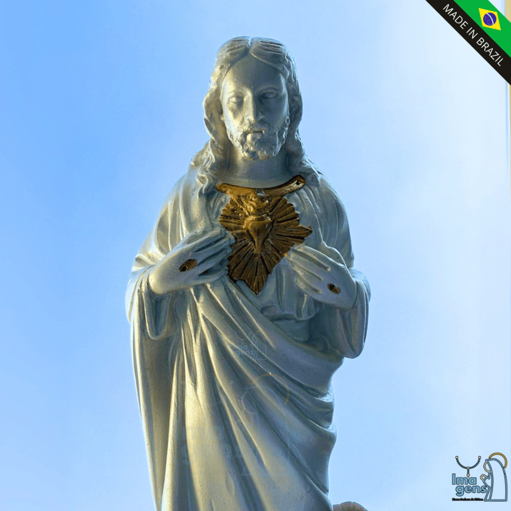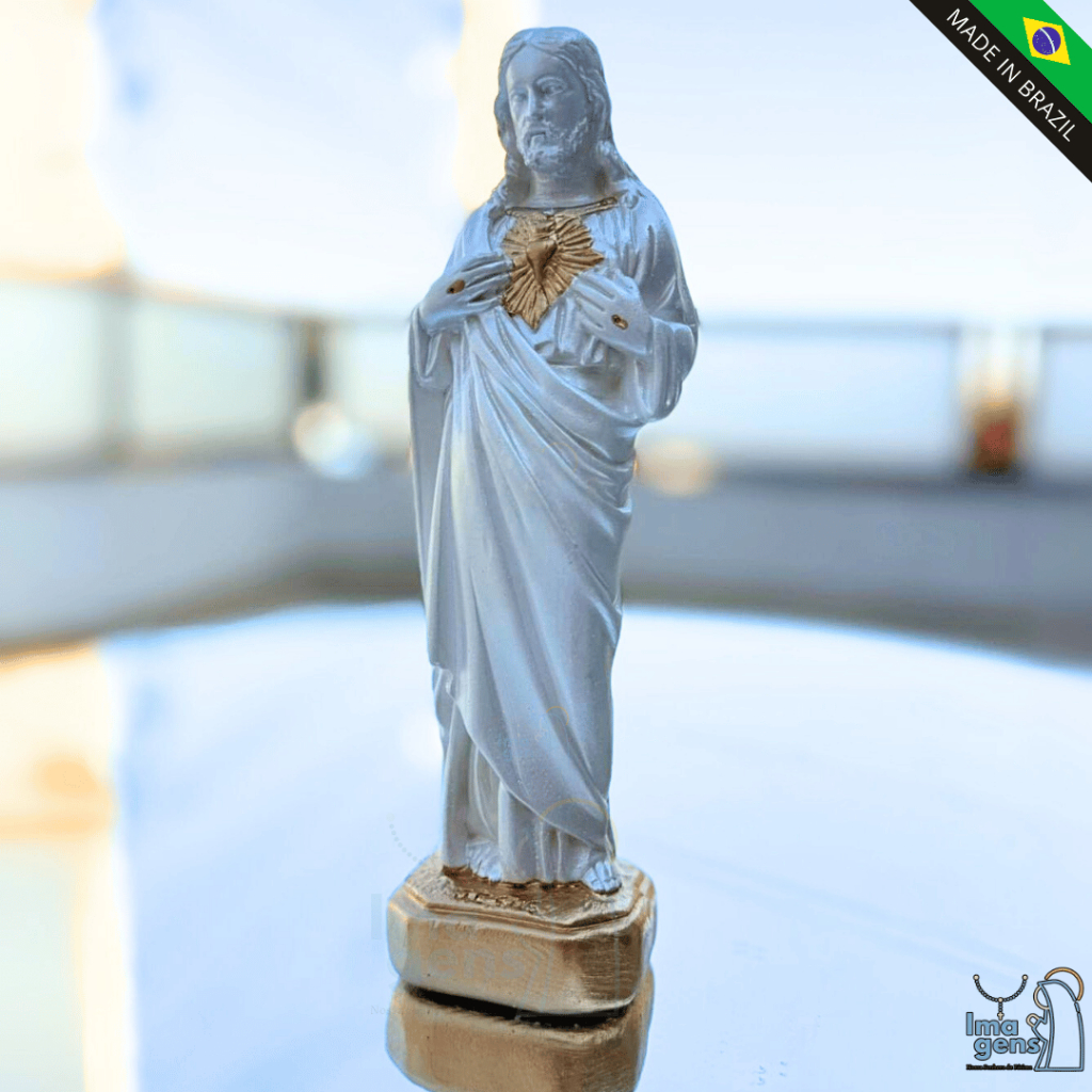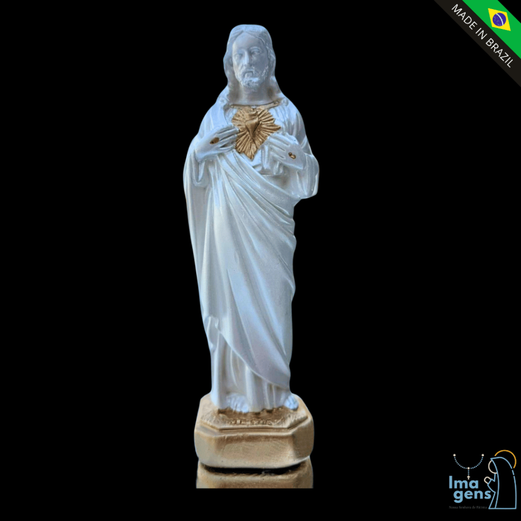 Imagem em gesso Sagrado Coração de Jesus 21cm Perolado com Dourado Altar