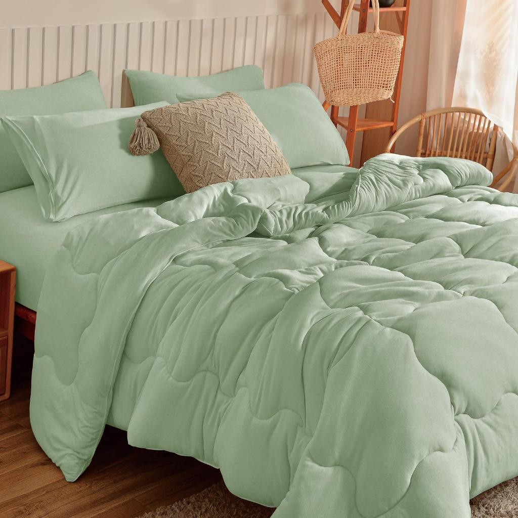 Edredom De Malha 3 Peças Queen King 2,40x2,60 Fibra De Soja Com Fronhas