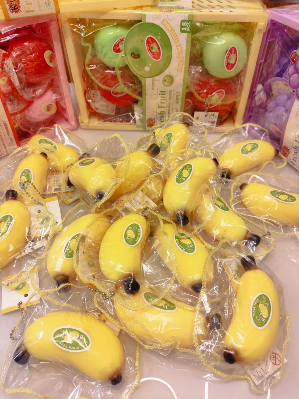Squishy de Frutas Antiestresse – Morango, Maçã, Uva e Banana | Brinquedo Sensorial Macio e Fofo