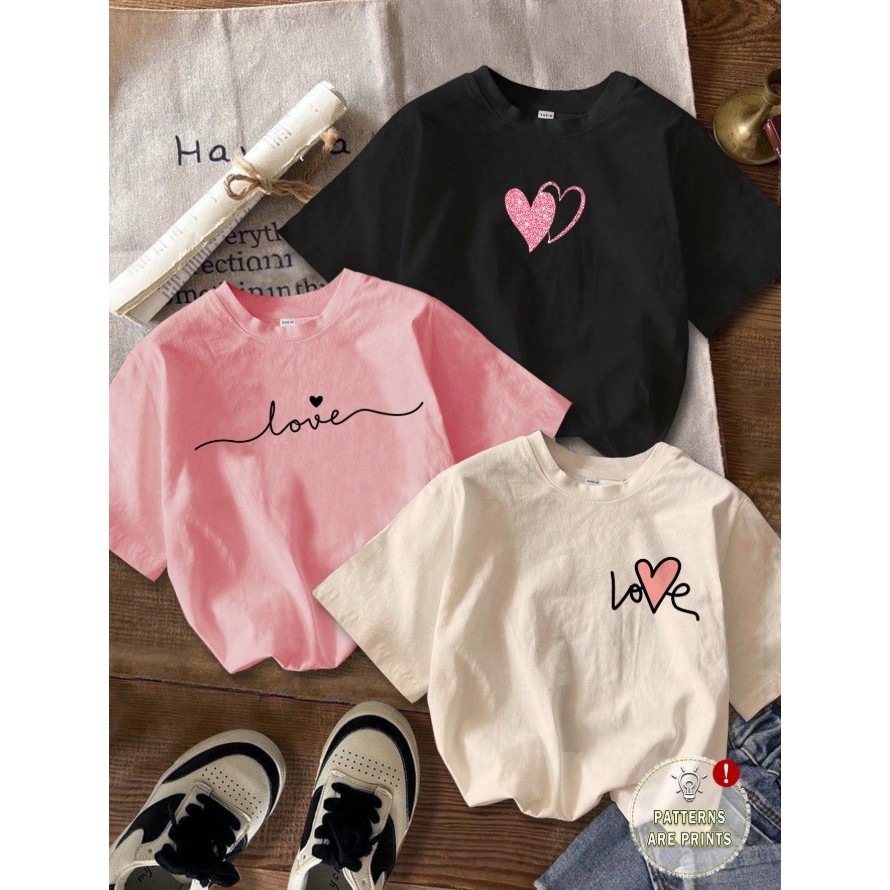 Kit 3 Camiseta Feminina T-shirt Infantil Básica Algodão Love Coração | Enviamos De Imediato