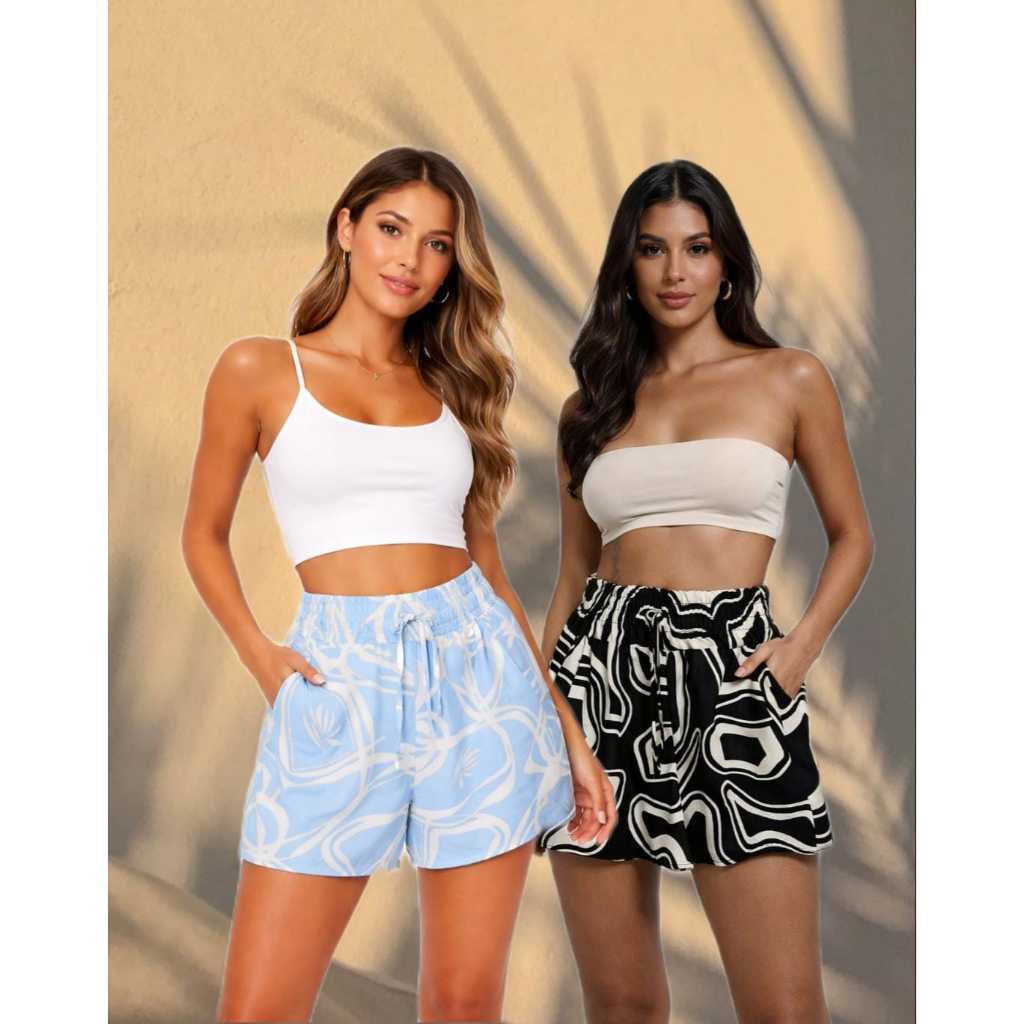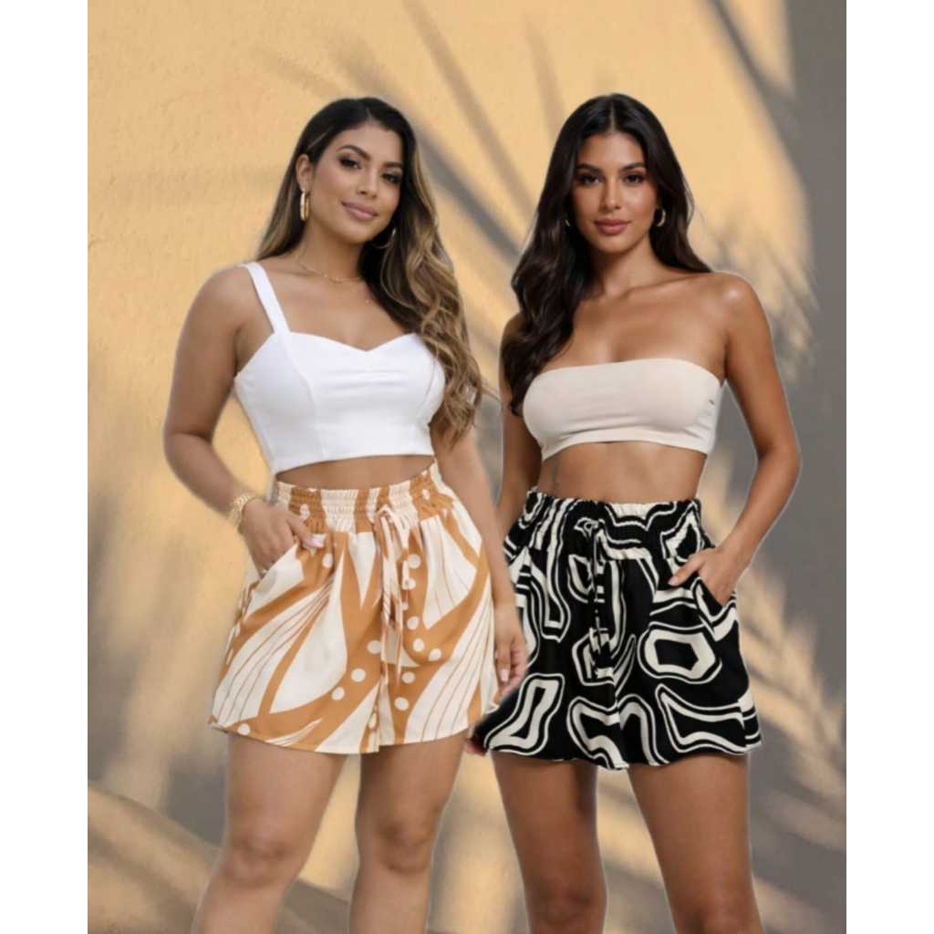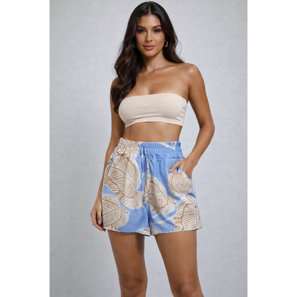 Short Feminino Estampadas Cintura Alta Com Elástico e bolso