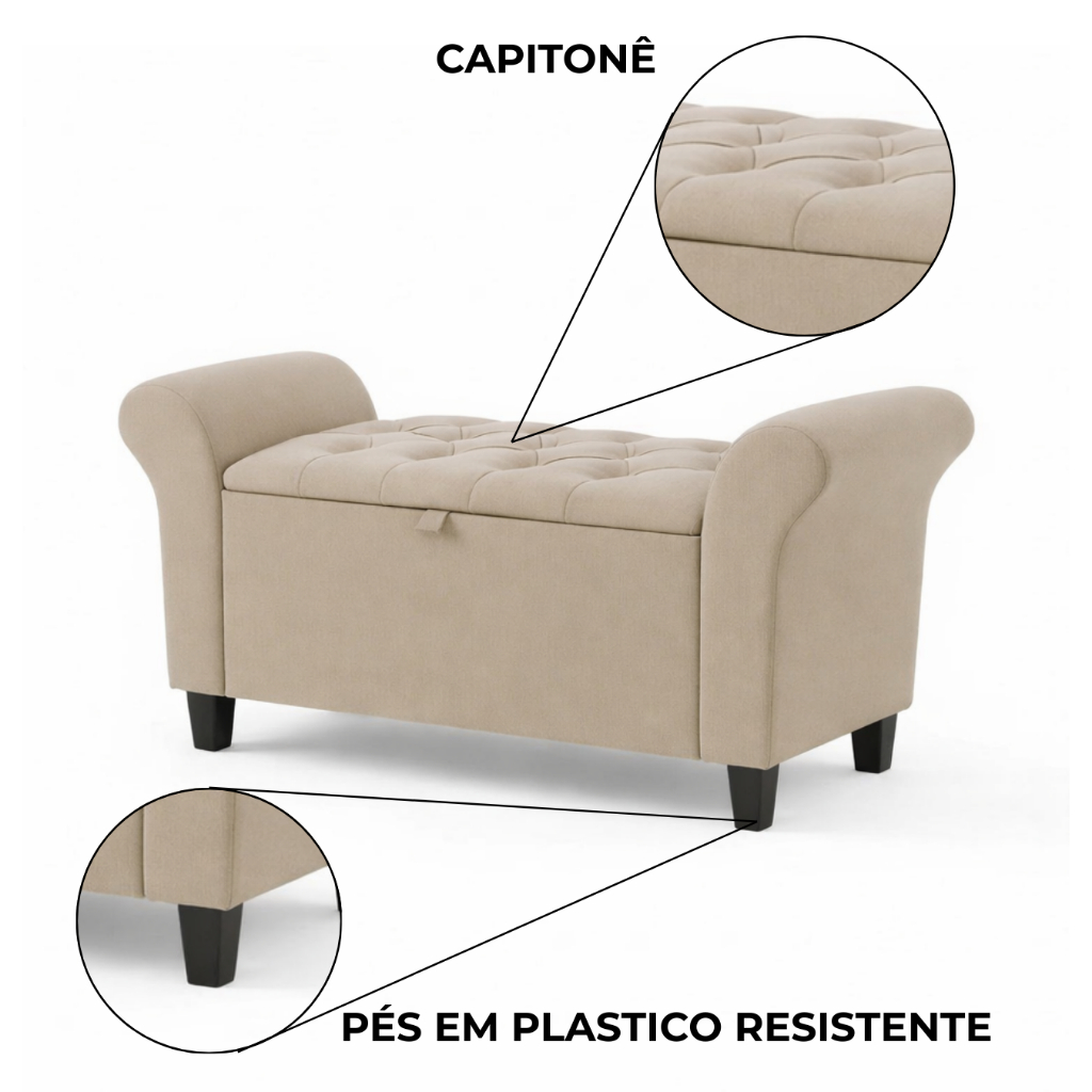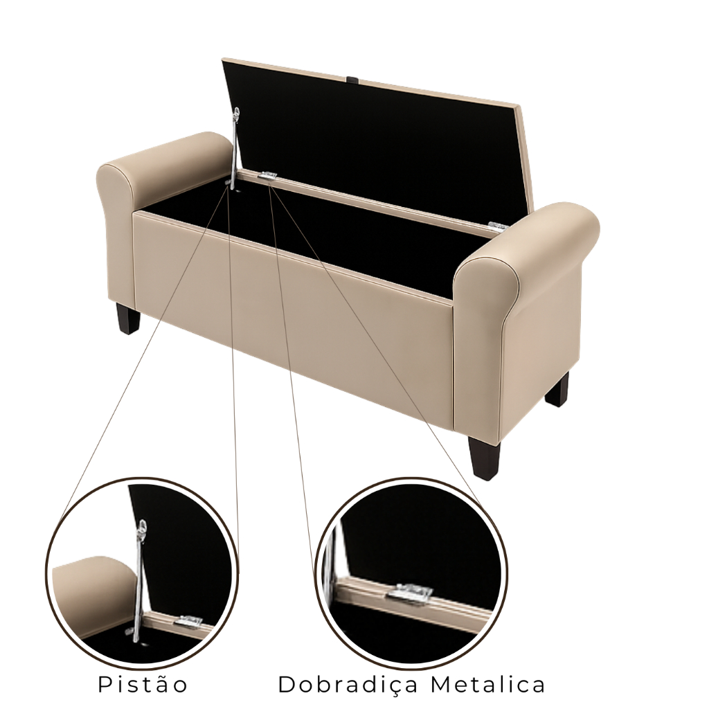 Recamier Baú Casal 90cm Recamier Estofado Pistão Baú para Quarto Solteiro Banco Aveludado