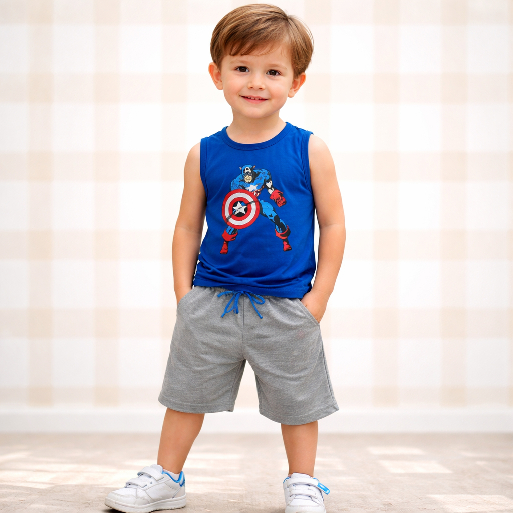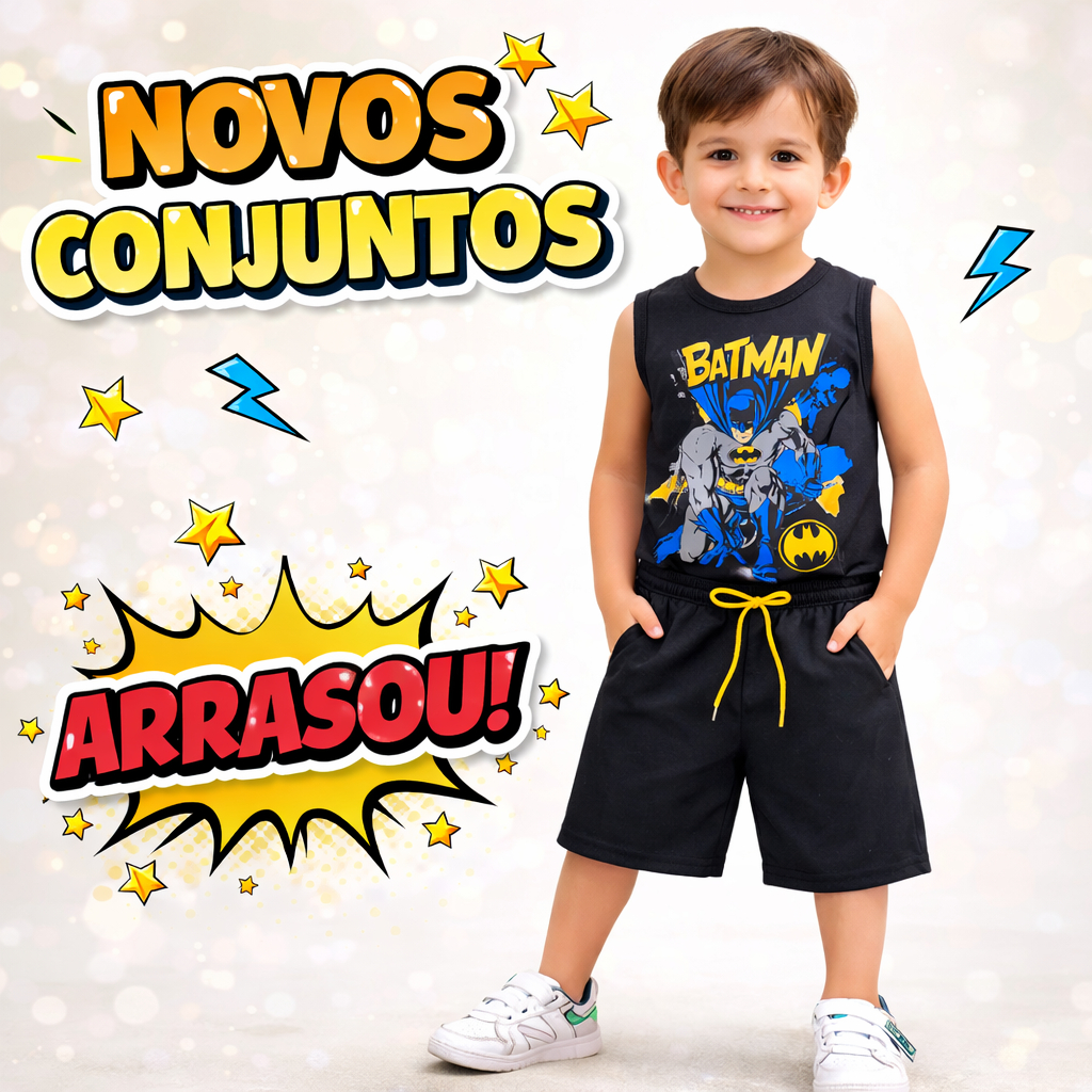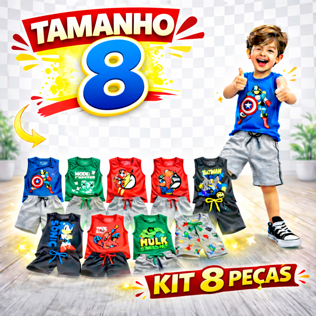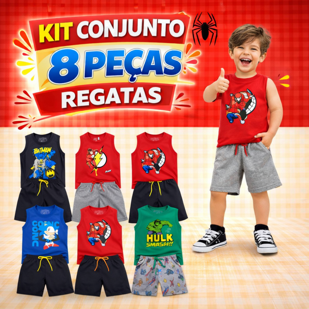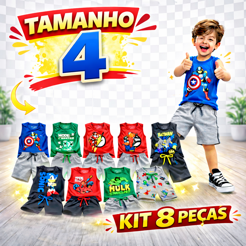 Kit 8 peças regatas Roupa menino Regatas/Shorts Bermuda Conjunto Infantil Super-Heróis Tam:2/4/6/8