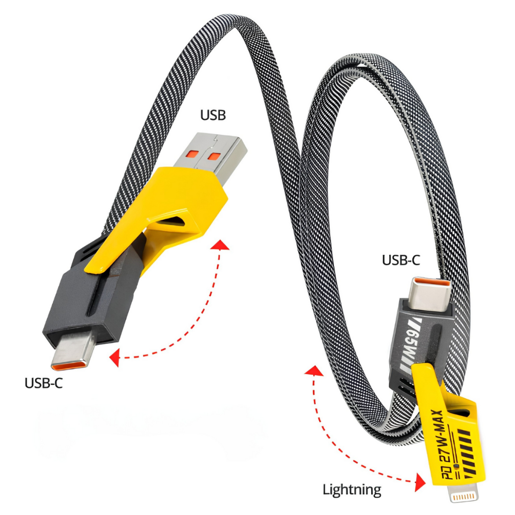 Cabo Multi-Conector 4 em 1 65W 1m –USB-C/USB-A/Lightning | Alta Velocidade de Carga iPhone & Android
