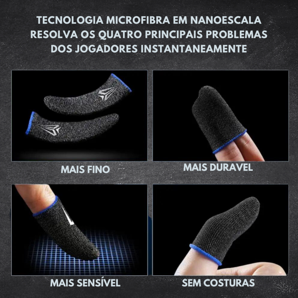 Luvinha de Dedo Gamer Fribra de PRATA | Anti Suor, respirável e Sensível COD, FREEFIRE, PUBG