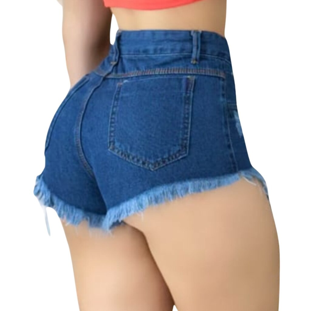 Short Jeans Feminino Azul Curto Barra Desfiada,Prospera.Yuri Moda Premium