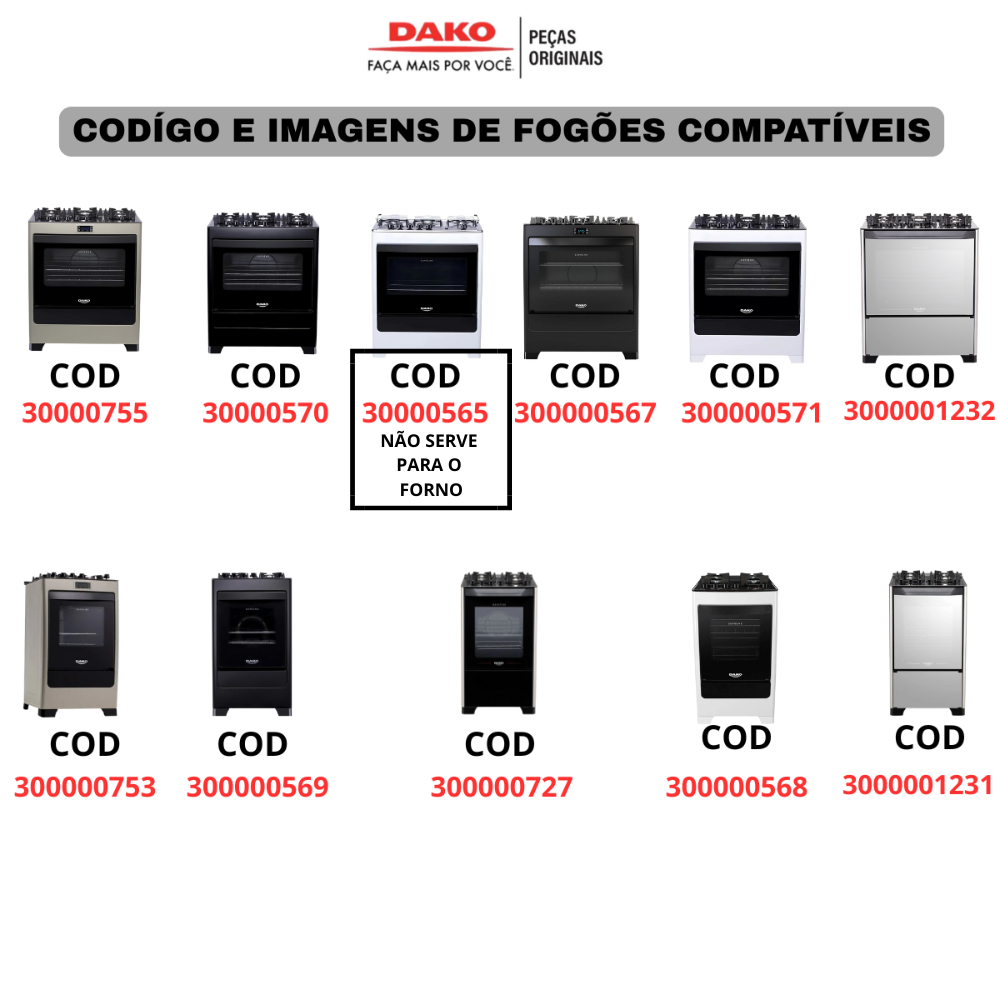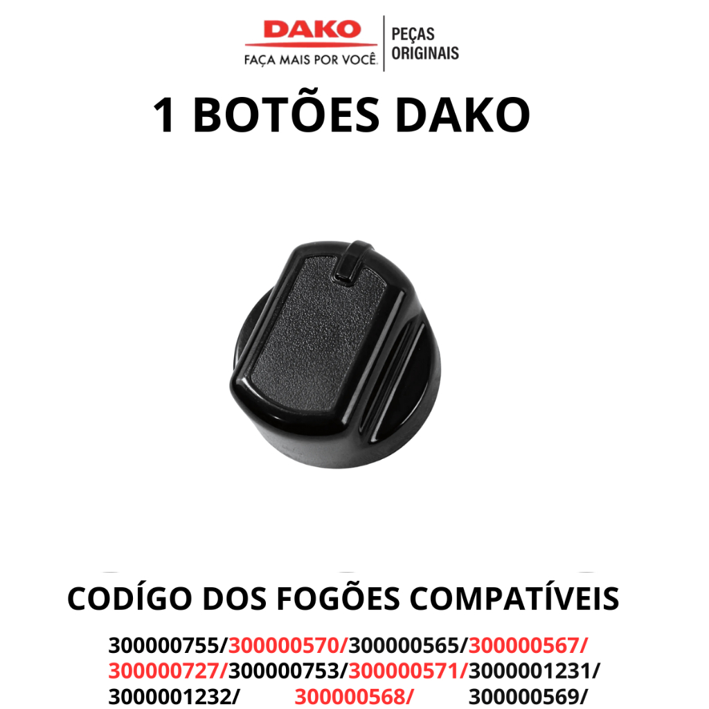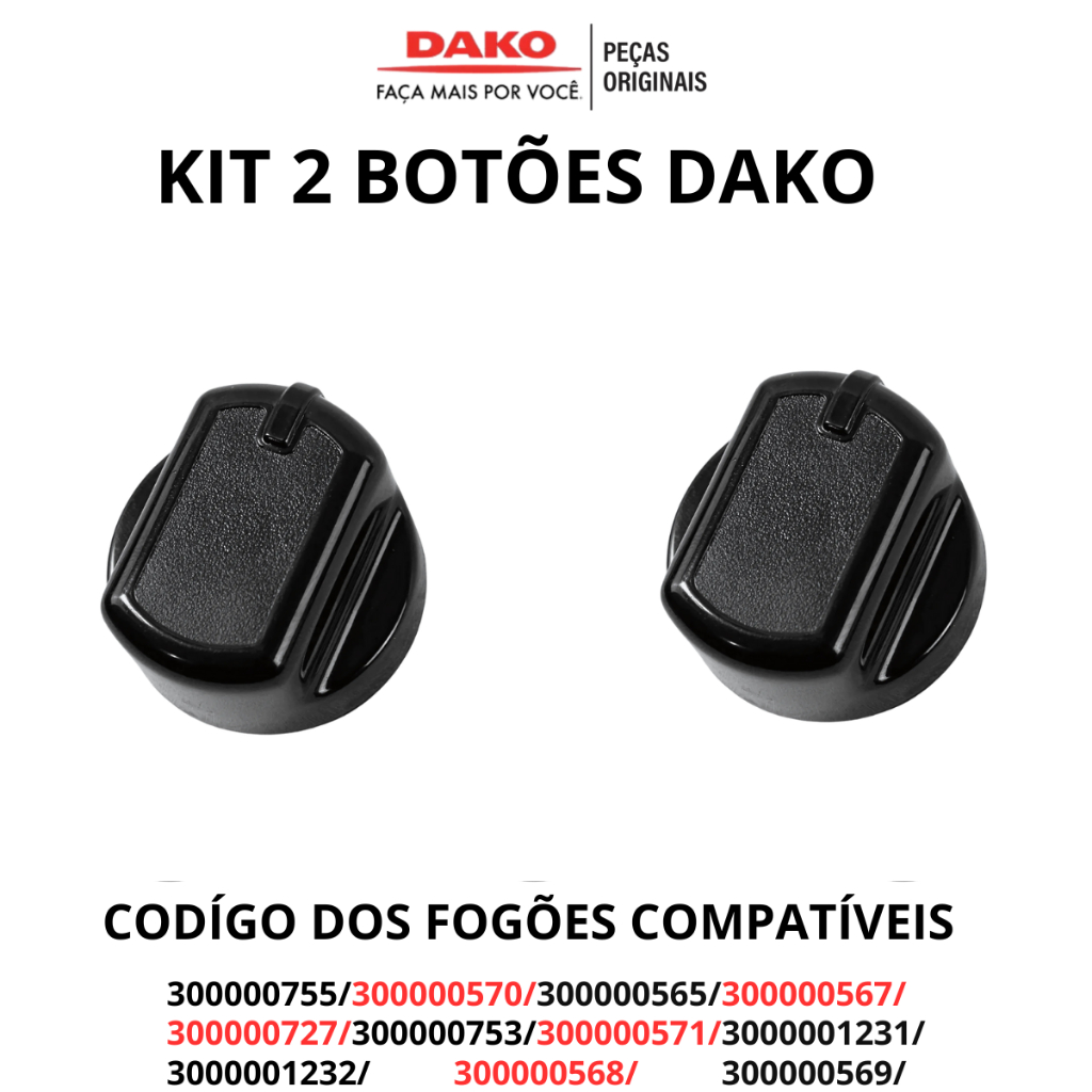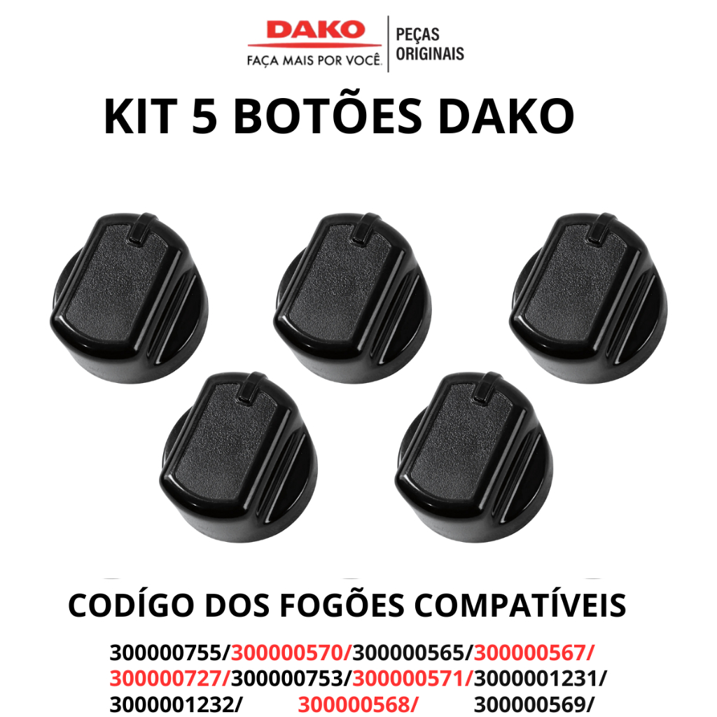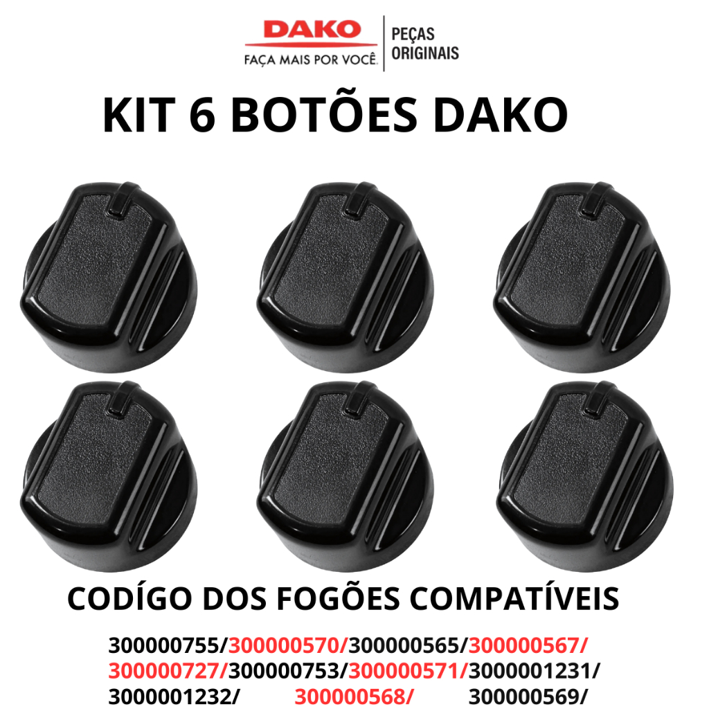 KIT COM 1-2-3-4-5 E 6 BOTÕES PARA FOGÃO DAKO SUPREME 4 E 5 BOCAS ORIGINAL DE FABRICA