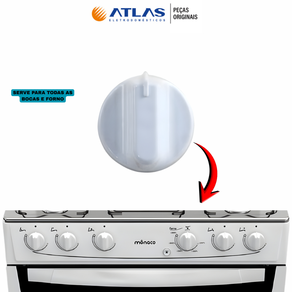 KIT DE 1 Á 6 BOTÕES MANÍPULOS FOGÃO ATLAS MÔNACO GLASS COLISEUM 4 E 5 BOCAS ORIGINAL