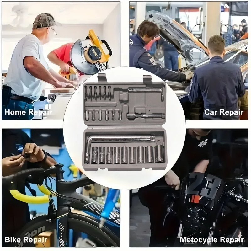 Kit 27 Peças Jogo De Ferramentas Soquetes Cromo Vanádio Completo Titanium