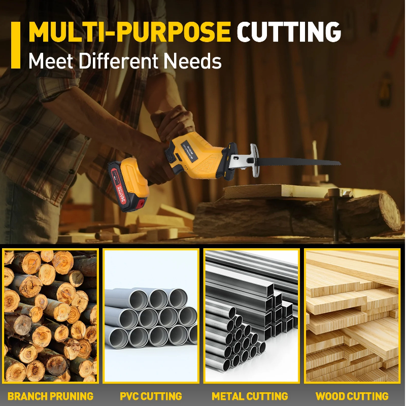 Serra Sabre Elétrica Sem Fio Profissional 21v 3500 Rpm Motosserra Duas Baterias pode cortar osso madeira lata