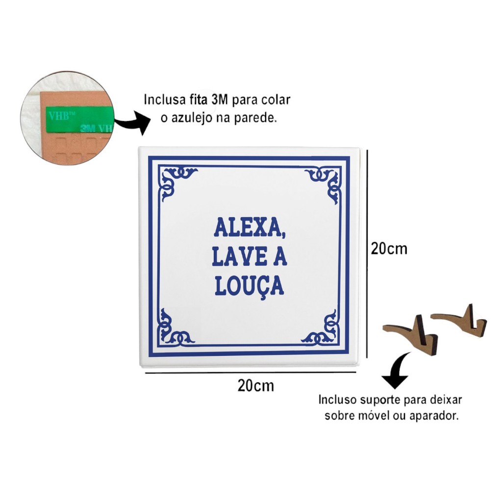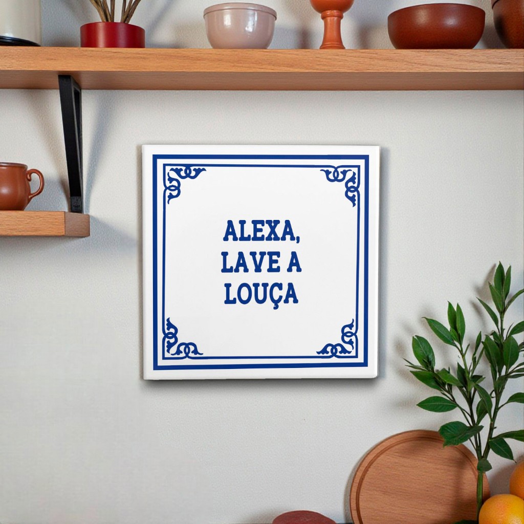 Quadro Decorativo para Cozinha | Alexa, lave a louça 20x20cm | Decoração Estilo Português Cozinha