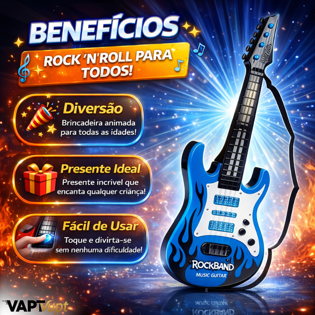 Guitarra Infantil Rockband 53cm Show Music com Luzes e Sons – Art Brink