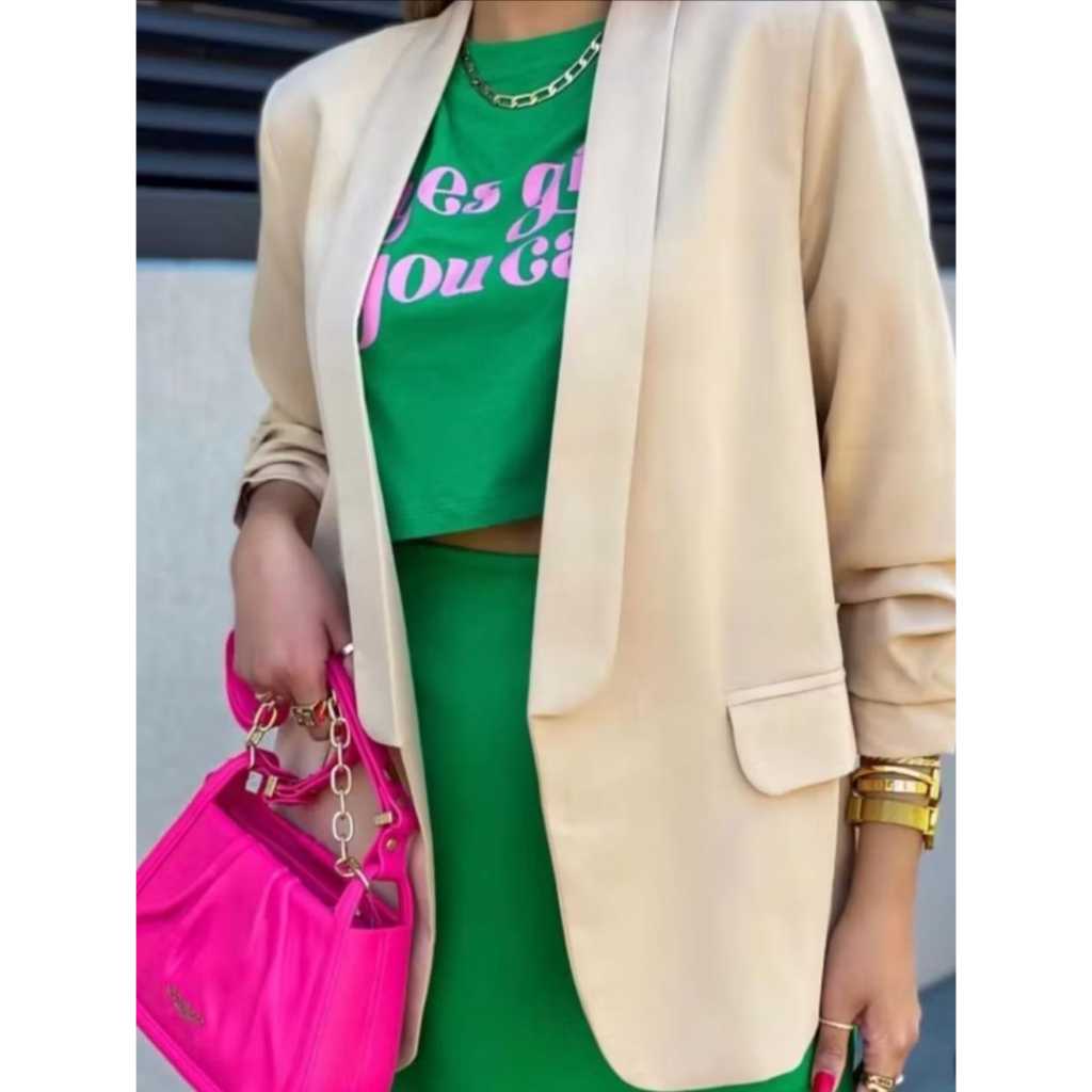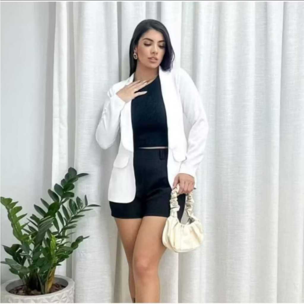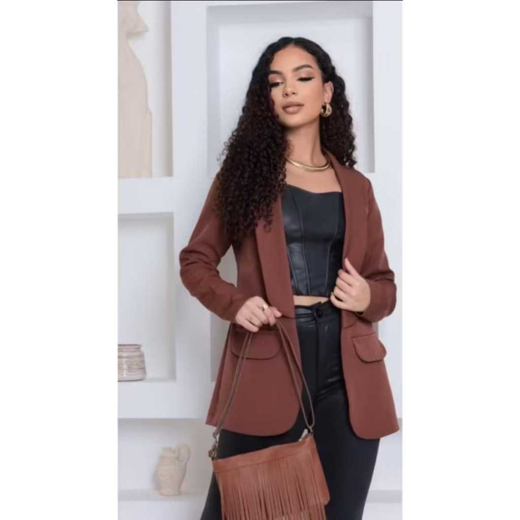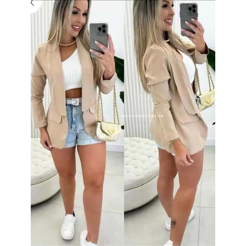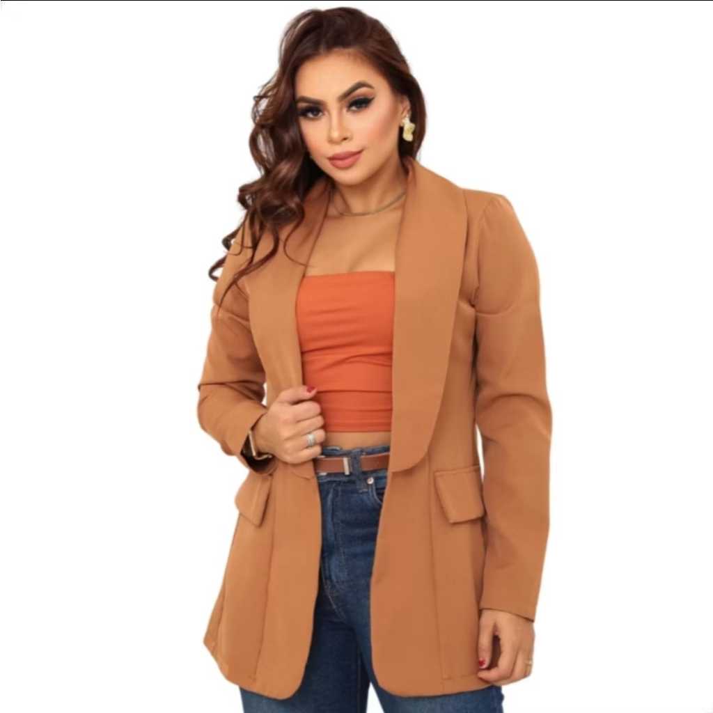 Max Blazer Feminina LongoTesido Alfaiataria Social Manga Longo