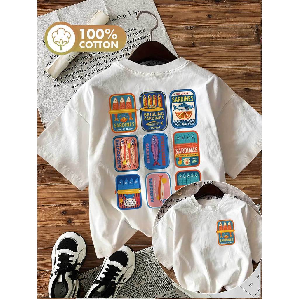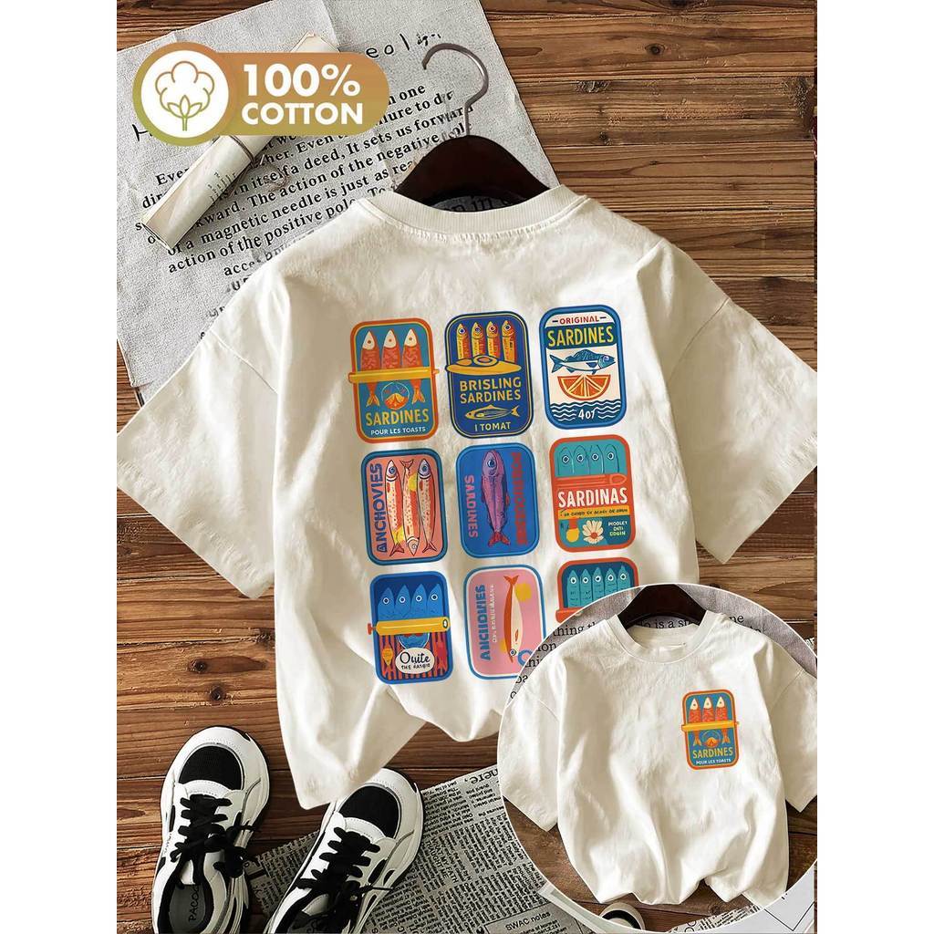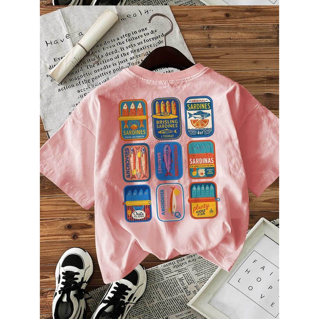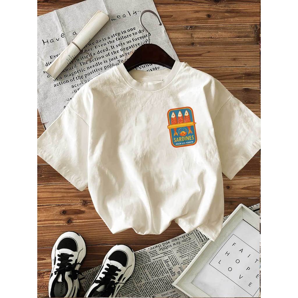 Camiseta Feminina T-shirt Vintage Sardinha – Blusa Estampada Conserva Casual Gola Redonda Verão