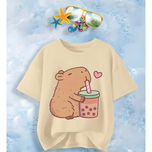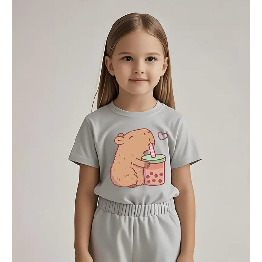 Camiseta Infantil Menina Capivara Milk Blusa 100% algodão estampada