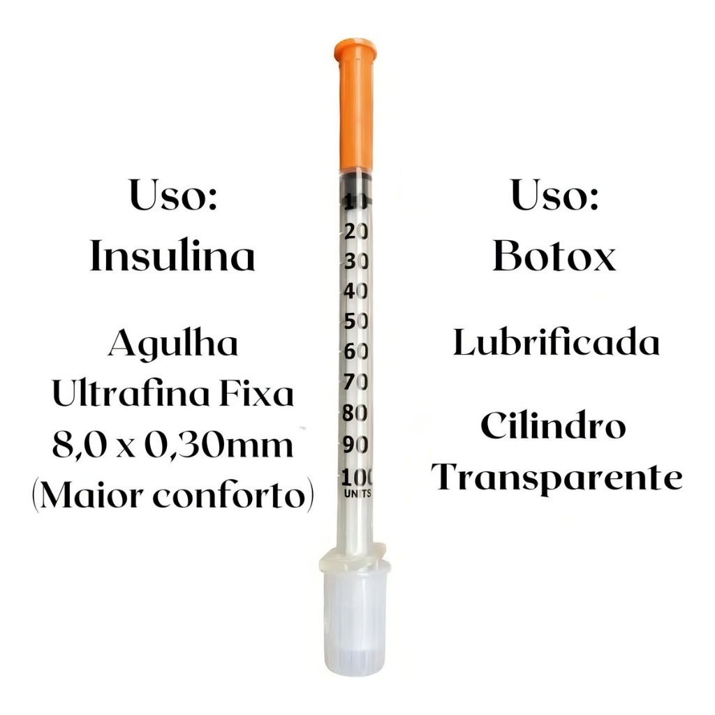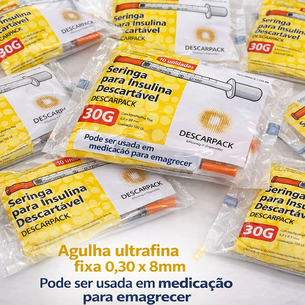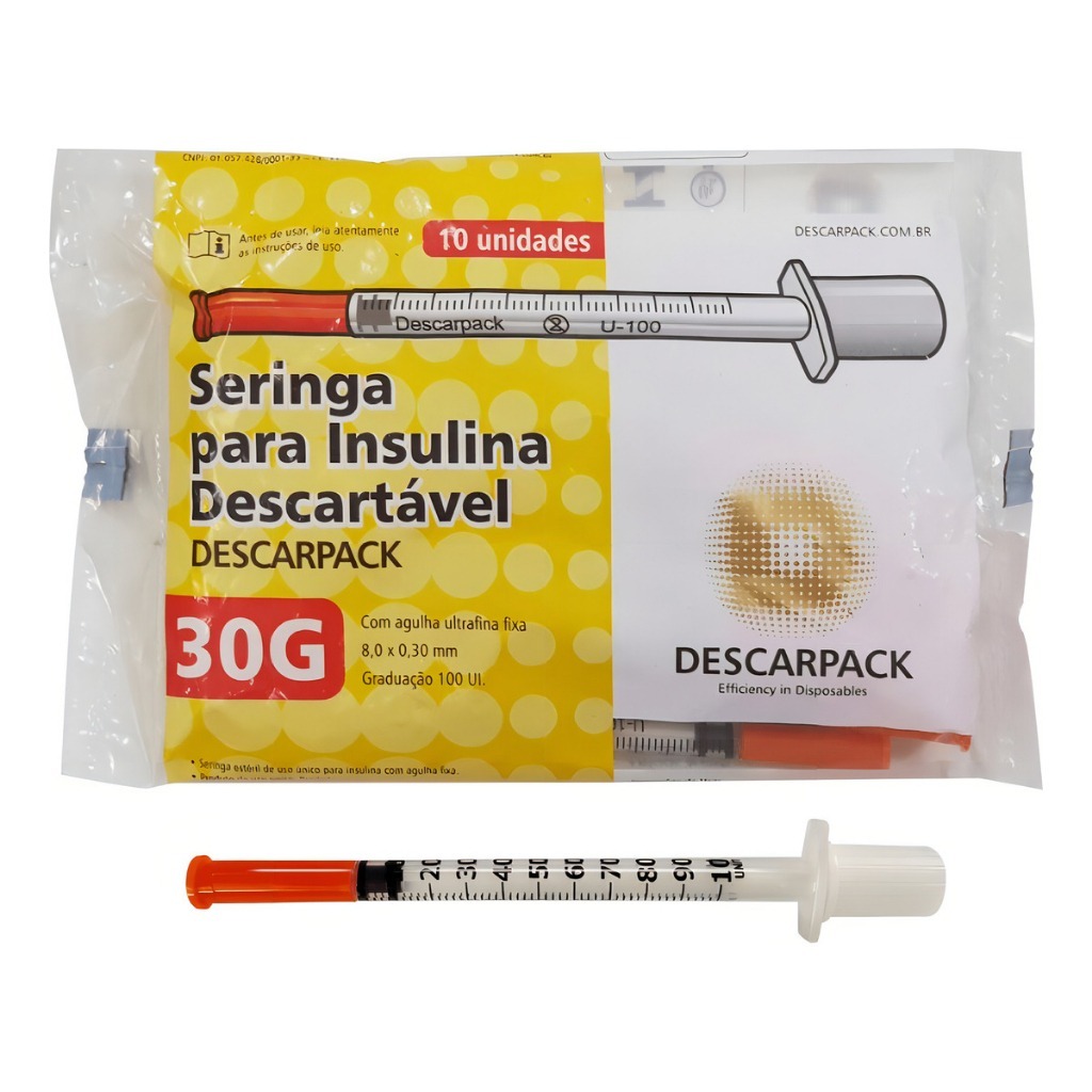Kit 10 Seringas Descartáveis Insulina 30G 8x0,30mm Descarpack 1ml