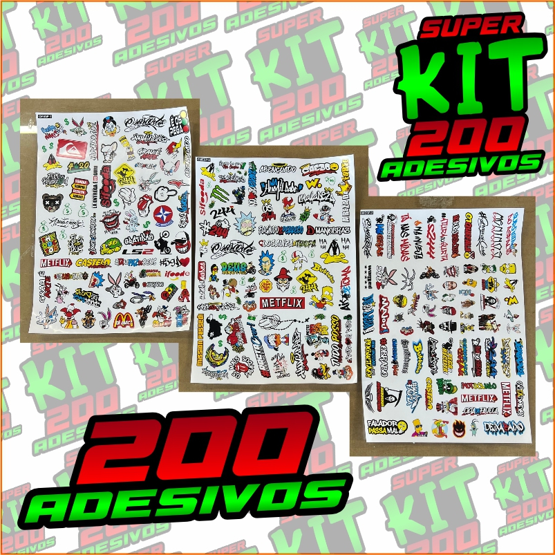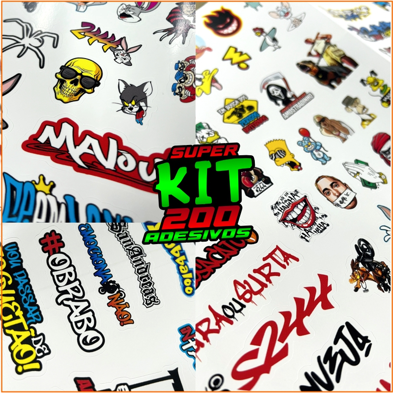 KIT 200 ADESIVOS masculino para Capacete Moto Bike Carro - Frases 244 Grau Osascorte Aranha - BRINDE
