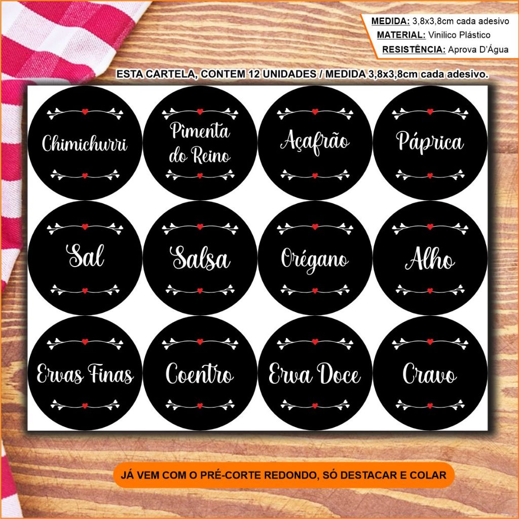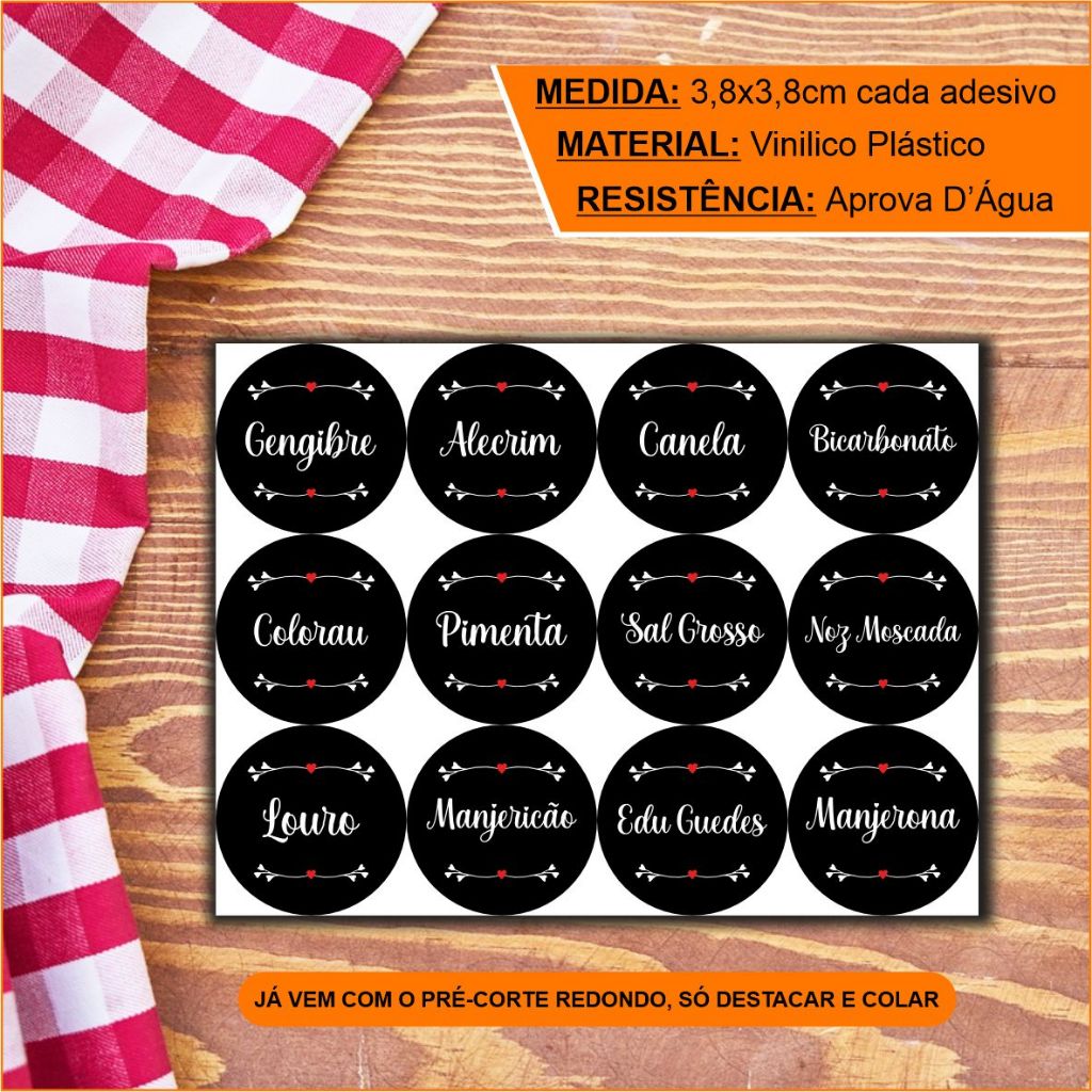 Kit 36 Etiquetas adesivas para Temperos Potes Condimentos e Mantimentos (3,8x3,8cm ) - APROVA DAGUA