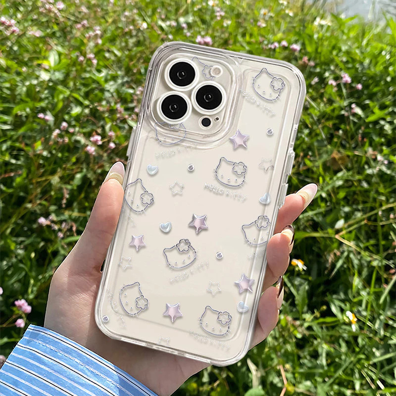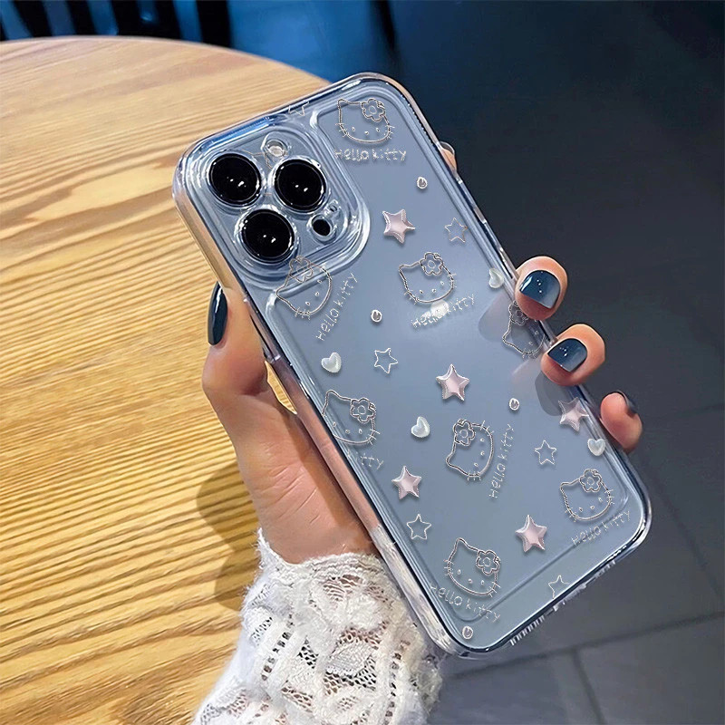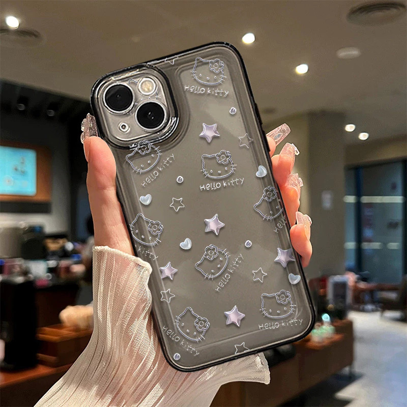 Capinha Capa Material transparente TPU Estampa da Hello Kitty Motorola Moto G04 G7 G15 G22 G32 G35 G52 G53 G60 G84