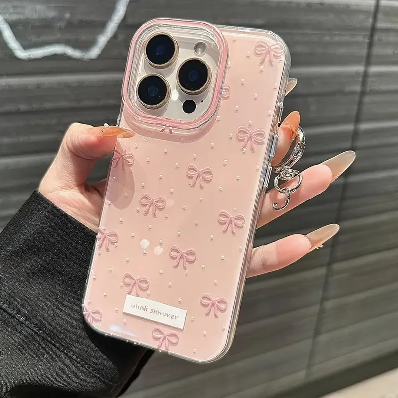 Capinha Capa Material transparente TPU Estampa de laço rosa IPhone XR 11 12 13 14 15 16 17 Pro MAX 14 15 16 Plus