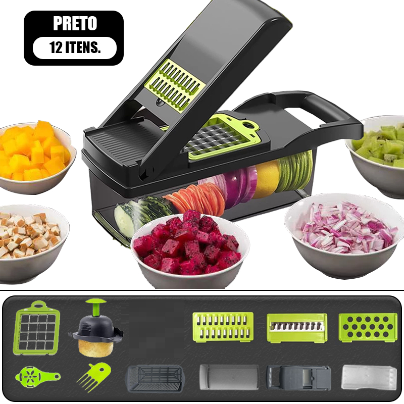 Cortador Multifuncional Cozinha com Lâminas Inox 16em 1 - Fatiador Profissional para Verduras, Frutas e Legumes
