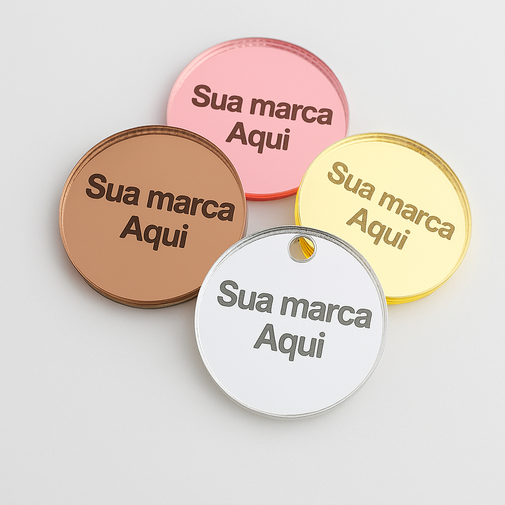 Tag Kit 30 Etiqueta Acrílico Espelhado Personalizada Nome Marca Laser Recorte Furos