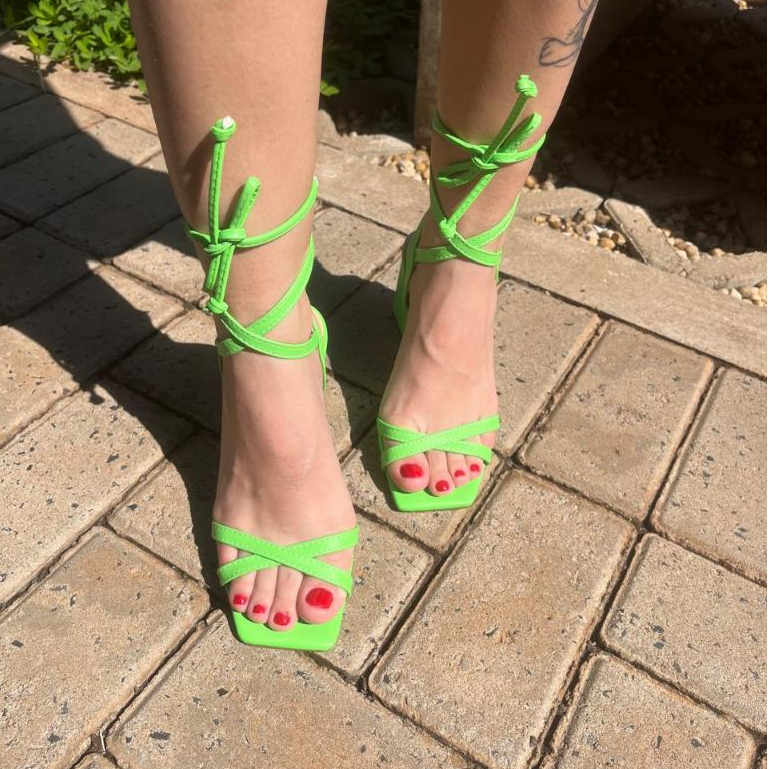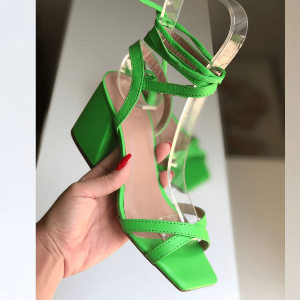 Sandália Feminina Verde Confortavel Salto Grosso 7cm Moda Mulher Sapato Feminino