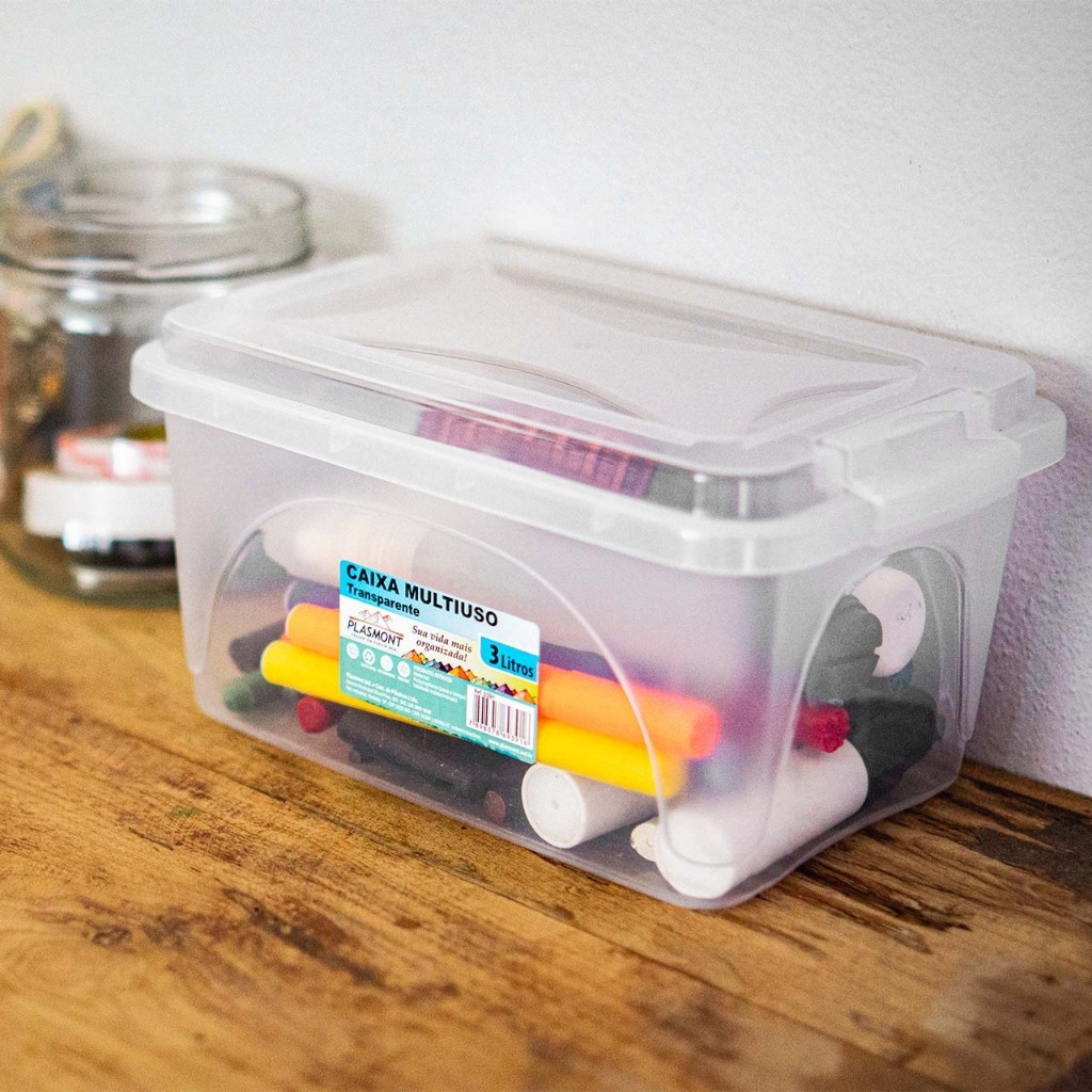 Kit 3 Caixas Organizadoras 3L c/ Trava – Multiuso, Documentos, Costura, Fotos, Ateliê, Escritório