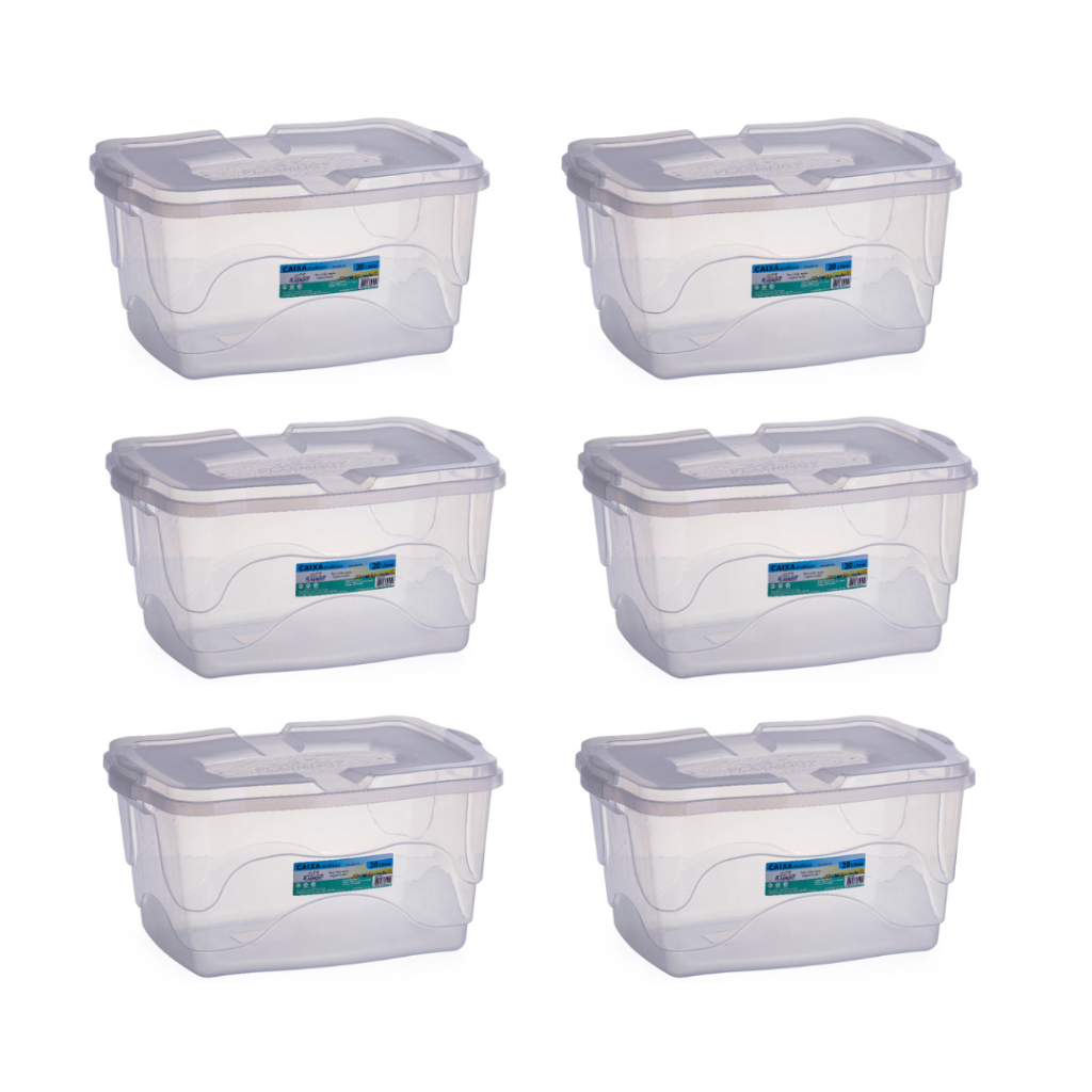 Kit 6 Caixas Container Organizadoras 20L Transparente de Plástico Para Brinquedos Livros Fotos Sapatos