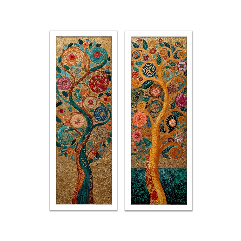 Kit 2 quadros 18x45 quarto, sala, escritório, árvore dourada