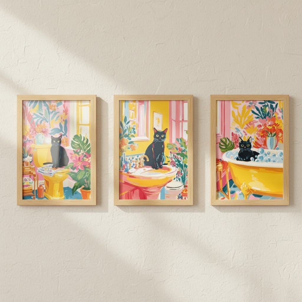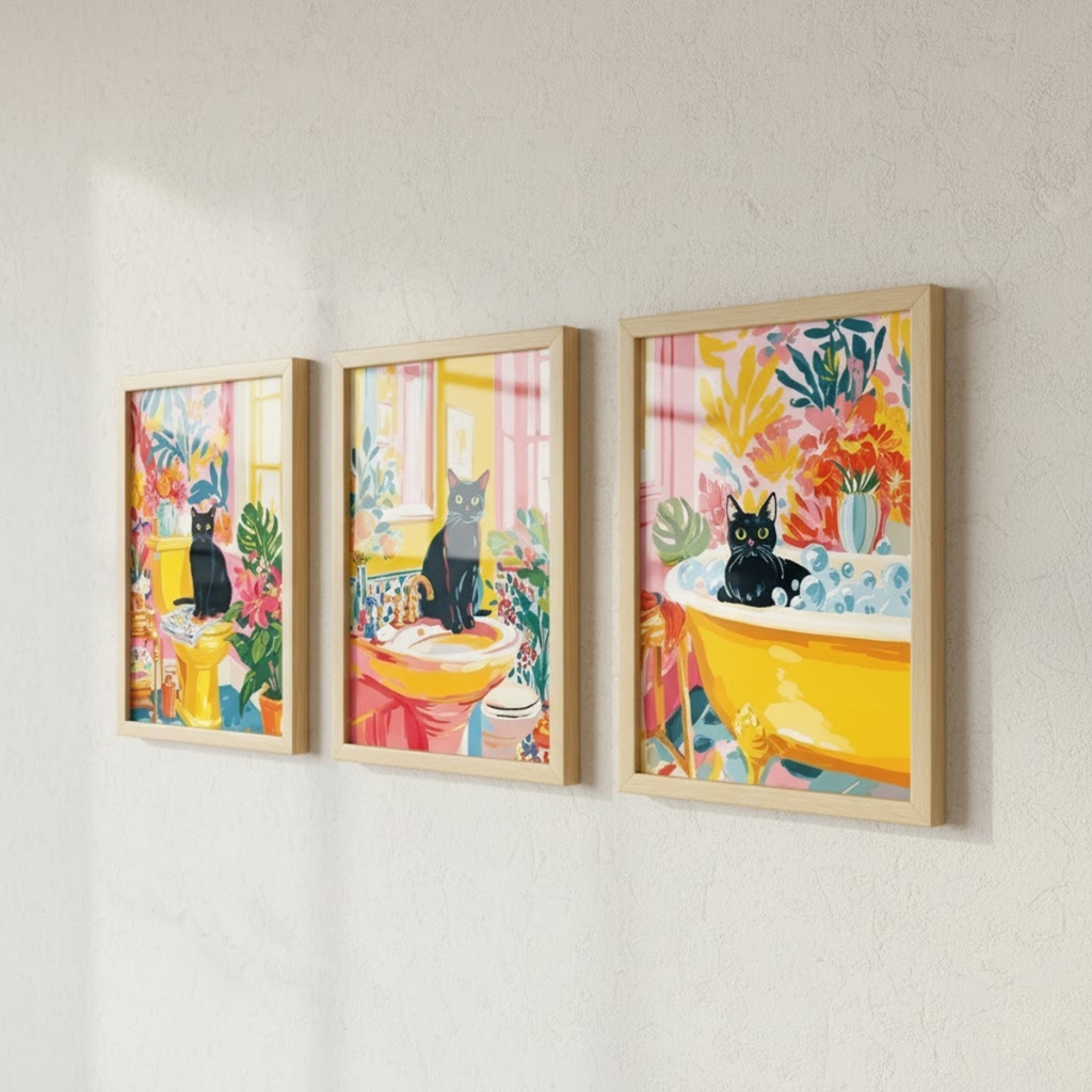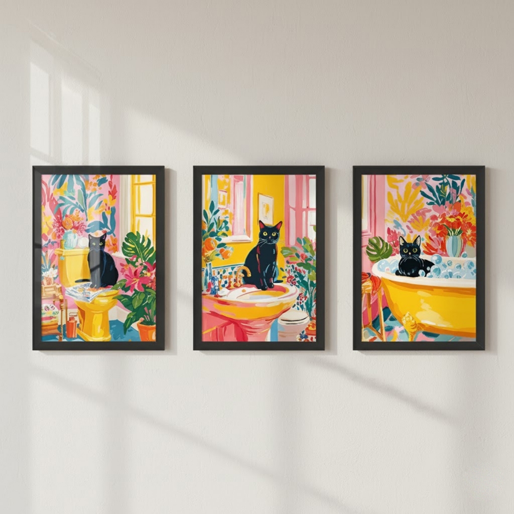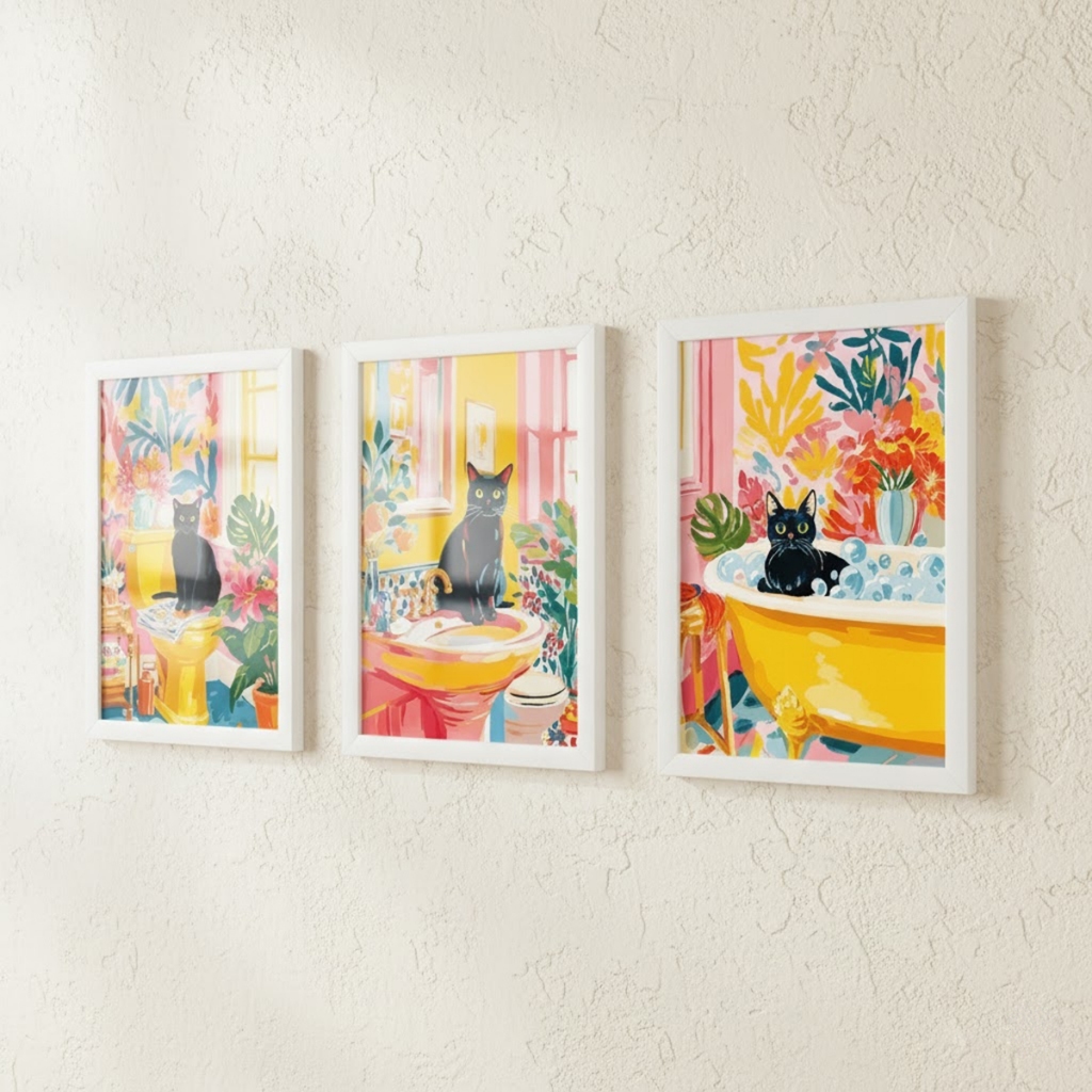 Kit 3 Quadros 18x24 cm Gatos Banheiro Tropical Vidro Pixer