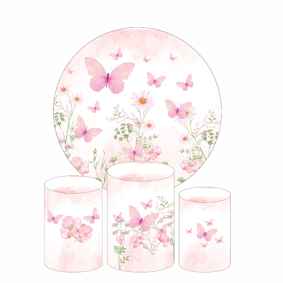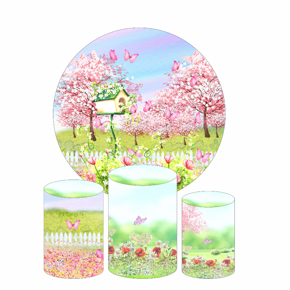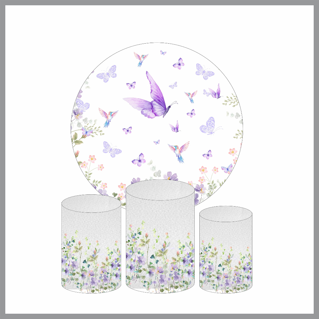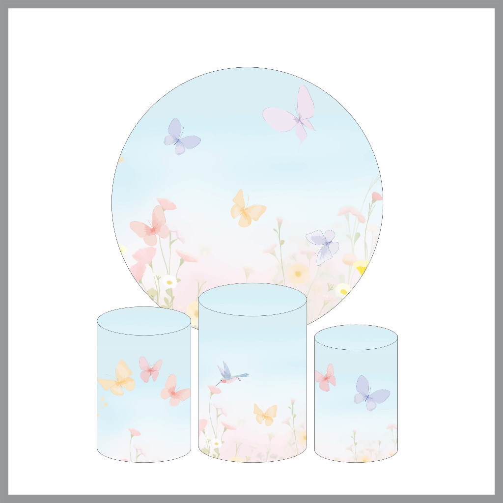 Kit Capa Para Painel Redondo 1,5m Jardim Encantado + Trio de Capas Cilindro Decoração de Festa