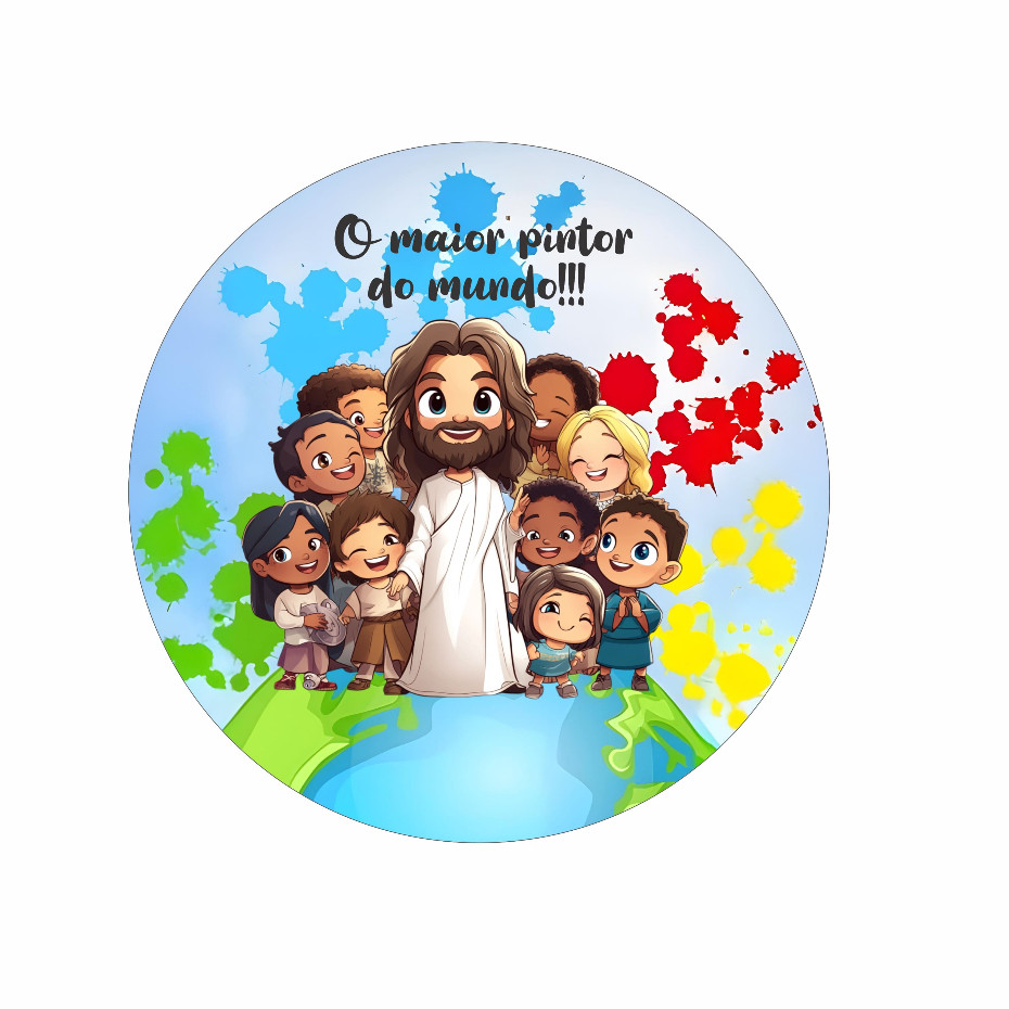Capa De Tecido Para Painel Redondo 1,50m Decoração Tema Jesus o Maior Pintor Do Mundo Festa Infantil
