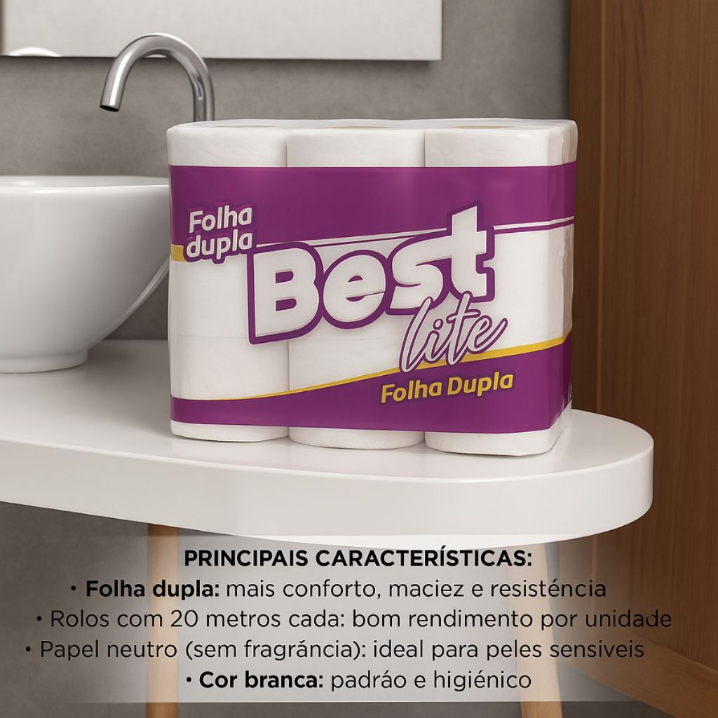 Papel Higiênico Best Lite com 12 Rolos Folha Dupla Neutro 20m Branco Suave Absorvente Banheiro Atacado Casa