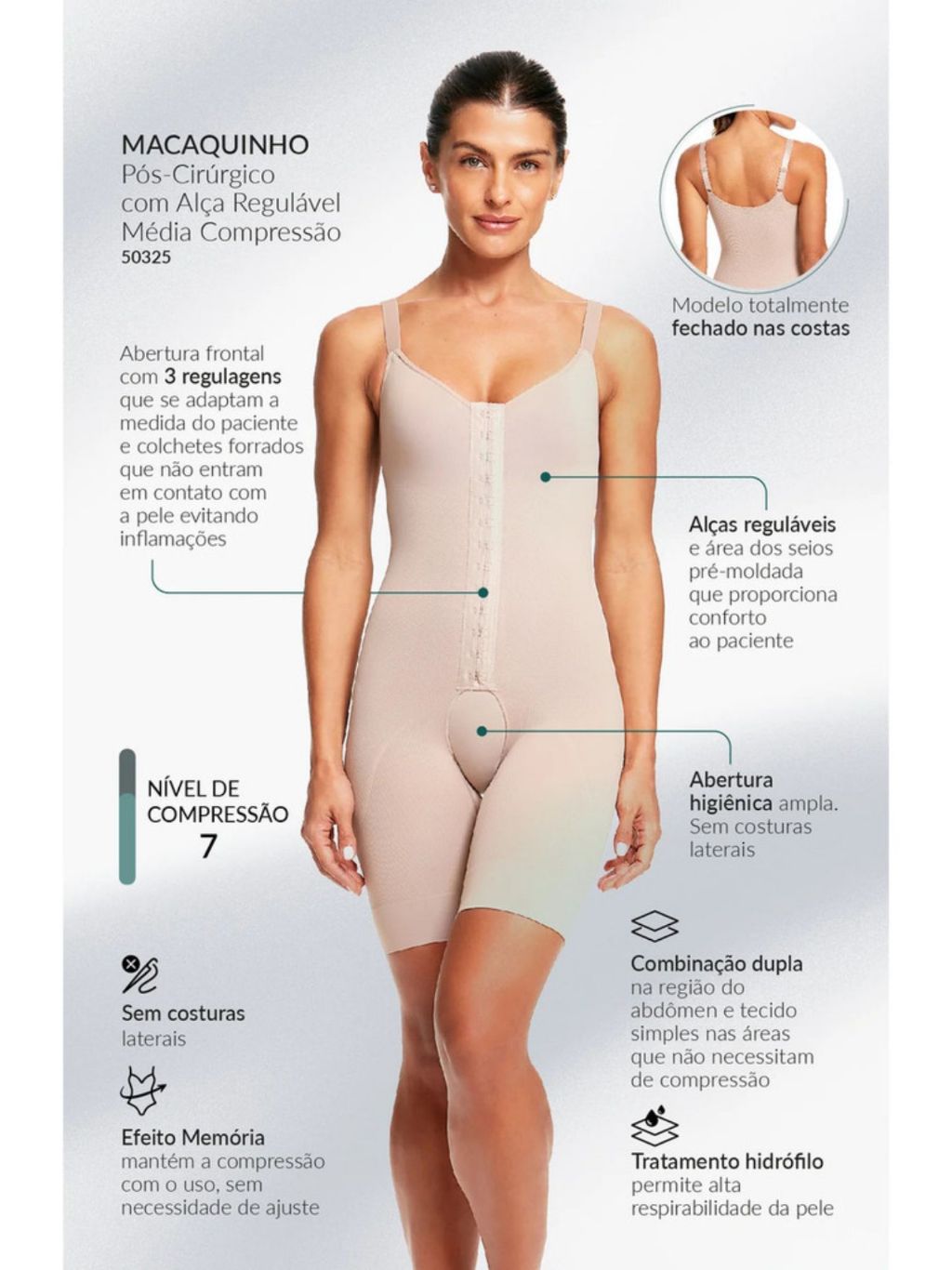 Cinta Macaquinho Modelador Pós Cirúrgico Compressão Confortável Pós Lipo Com Alça Regulável Plié Med