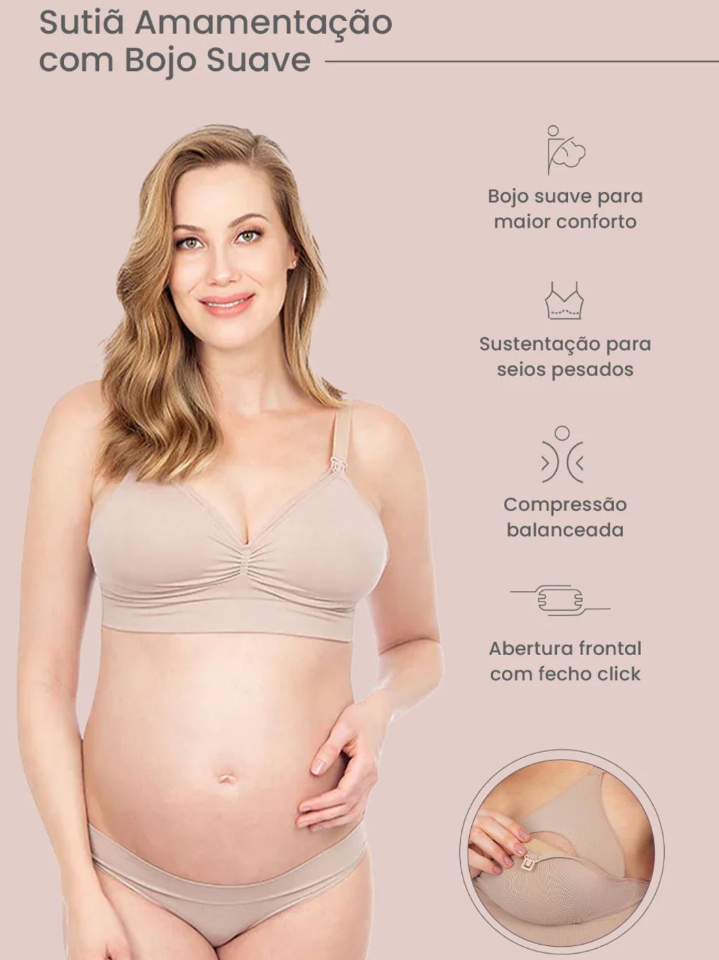 Sutiã Amamentação Com Bojo Suave E Fecho Click Frontal Sem Costuras Laterais Facilidade Ao Amamentar