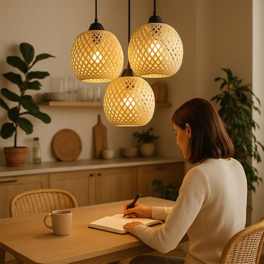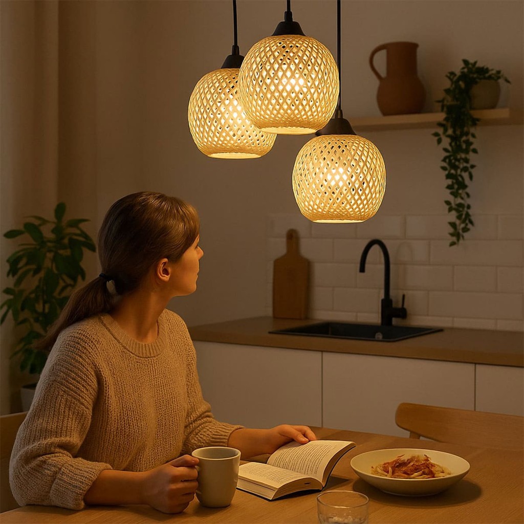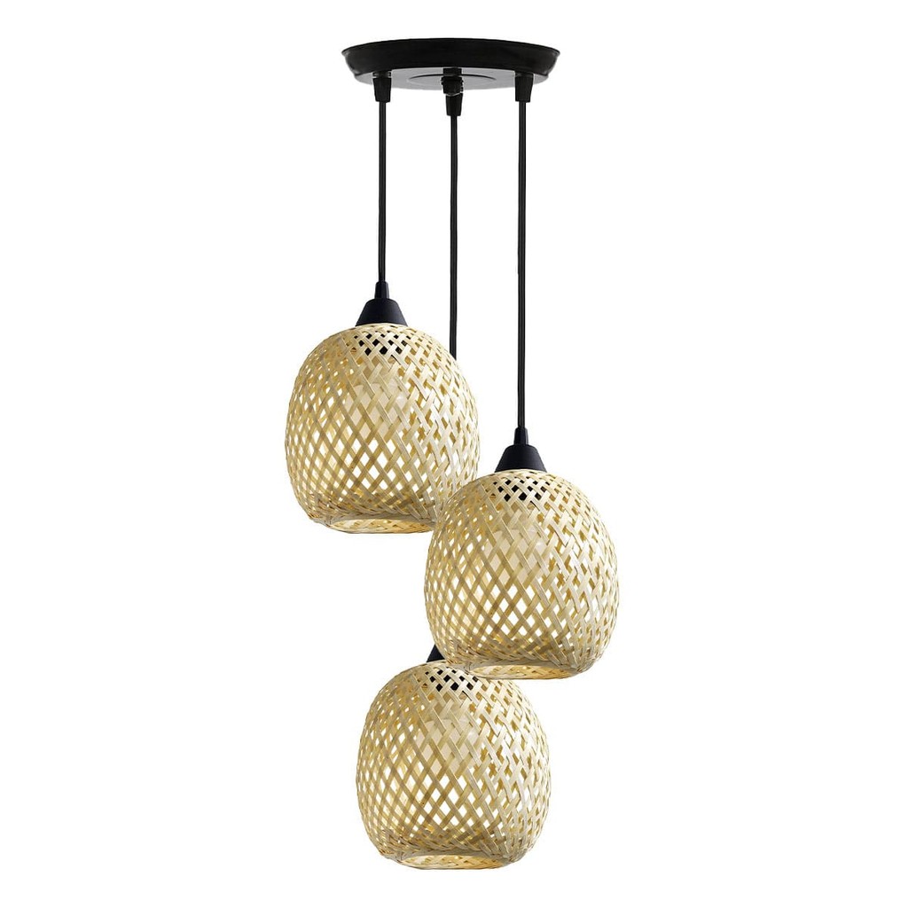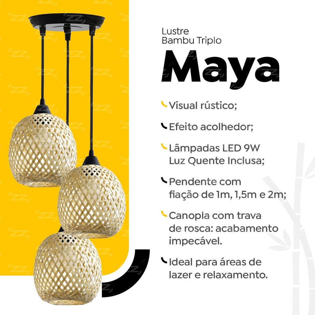 Luminária de Teto Lustre Pendente Triplo Luzza Maya Bambu Rústico