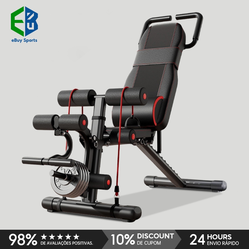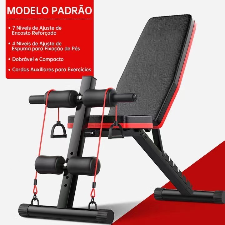 Banco treino 6em1 ajustável: 450kg, 3 posições recumbente, sup/inf, ajuste 7°, para academia e casa.
