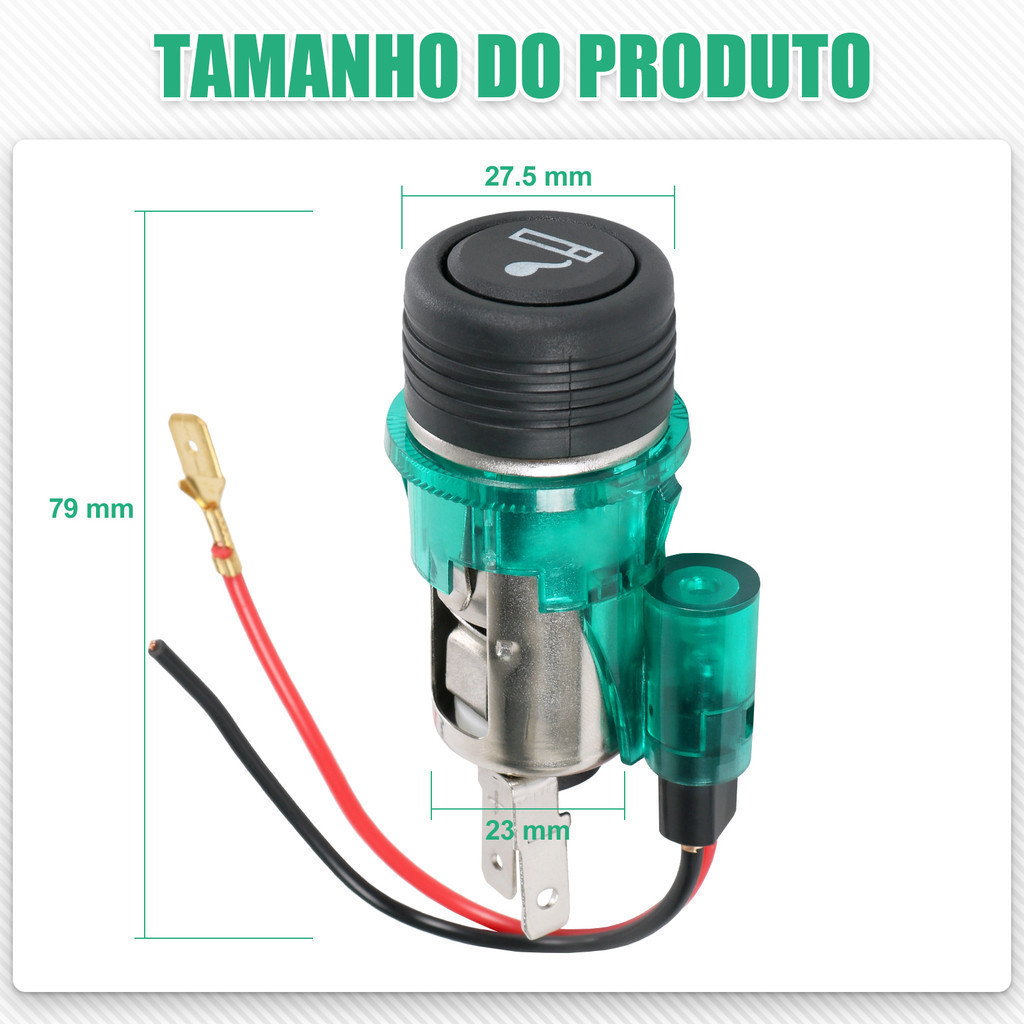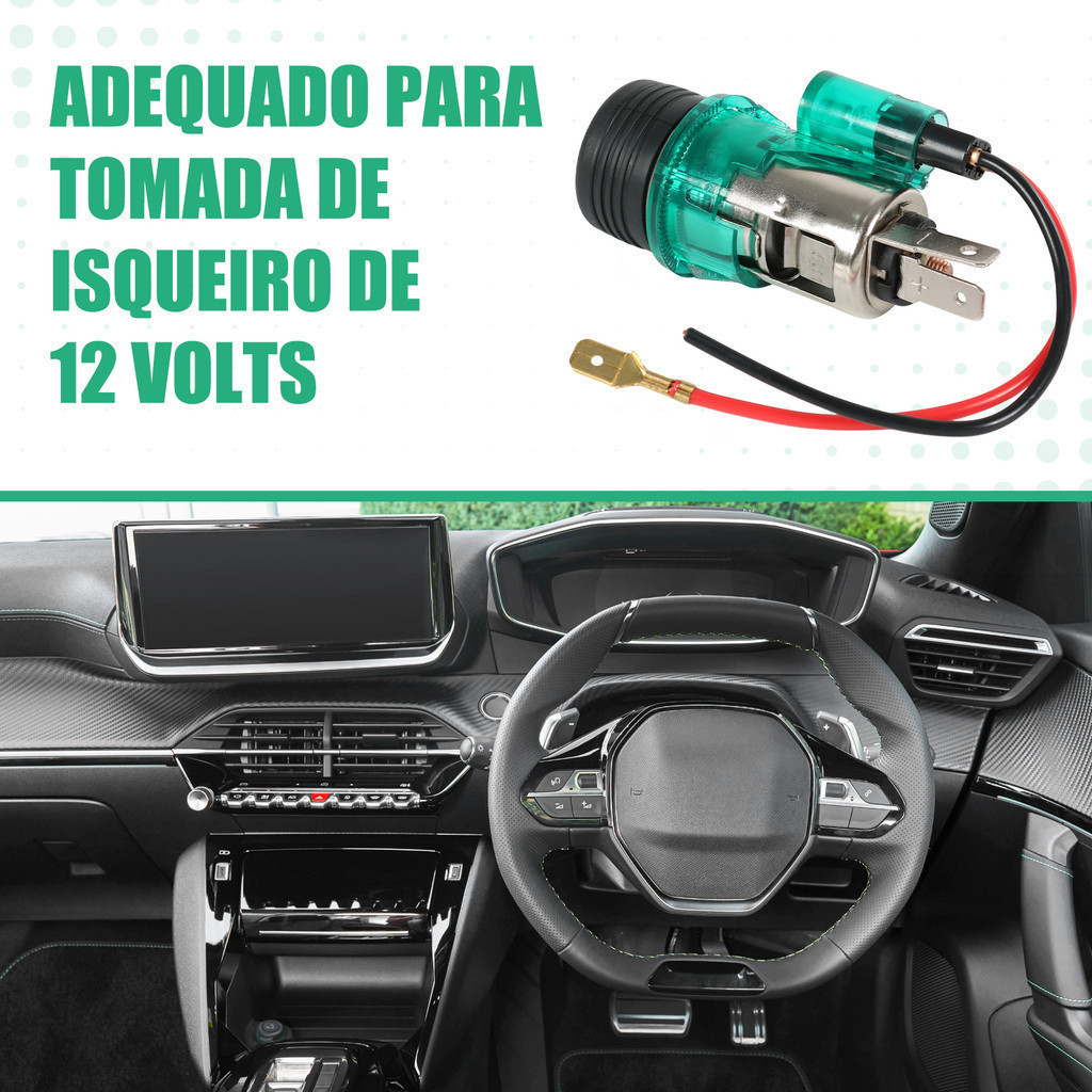 Acendedor tomada de carro Carregador Para Veículos 12v Verde