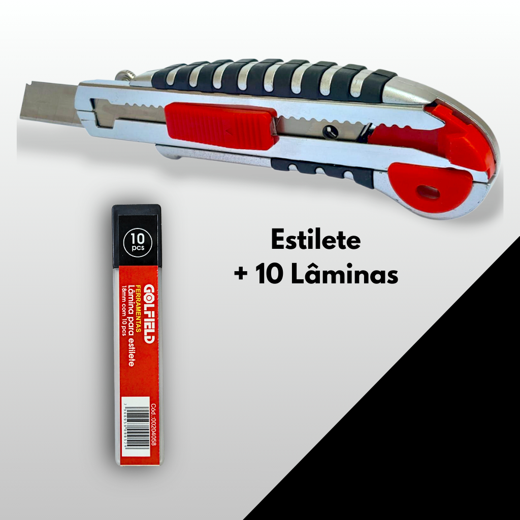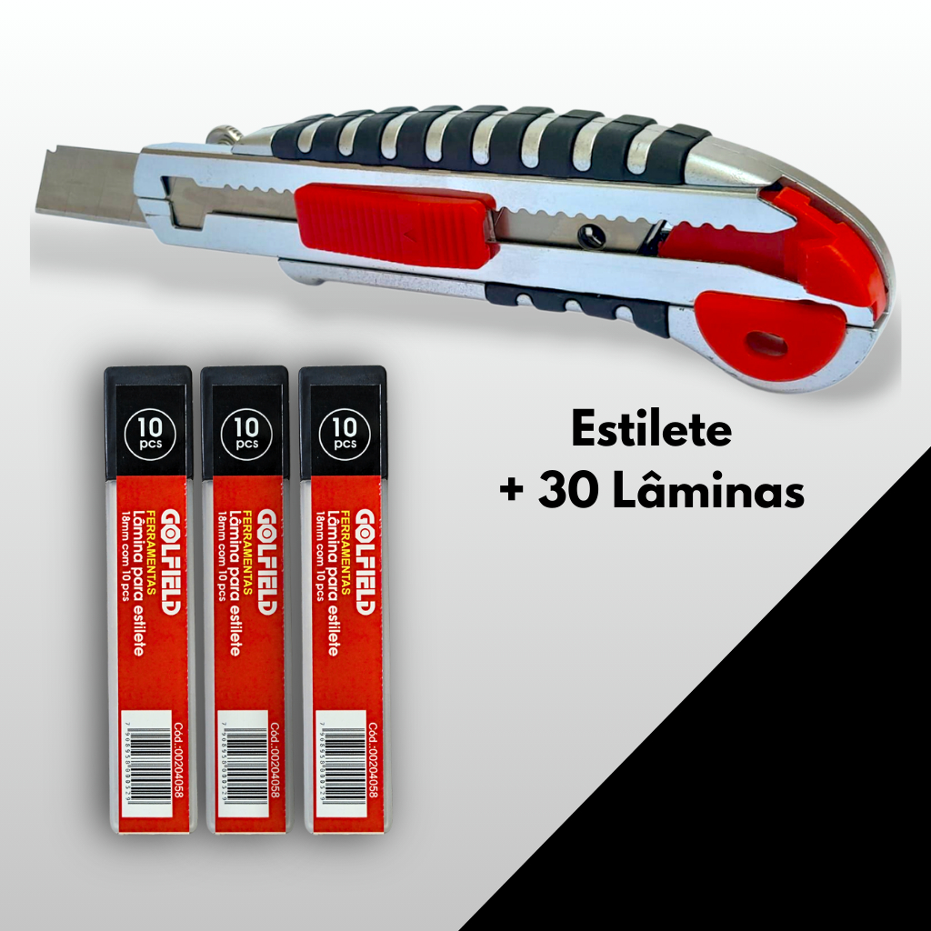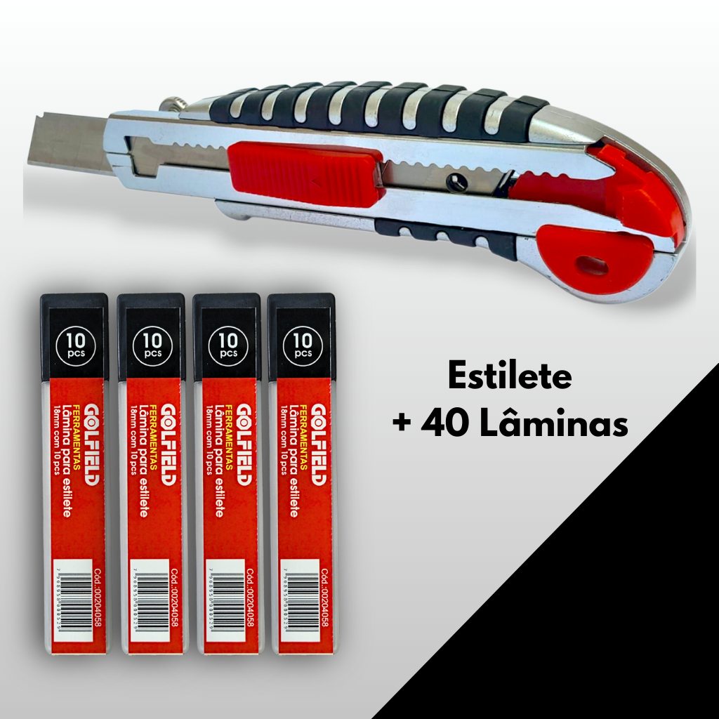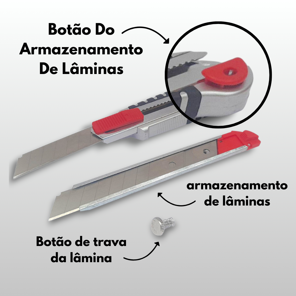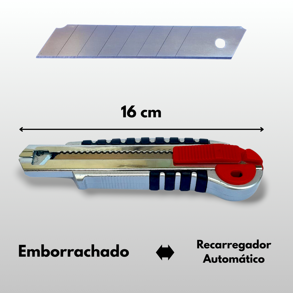 Estilete Profissional Emborrachado 18mm c/5 Lãminas recarga Auto Ergonômica 10 20 30 40 Lâminas