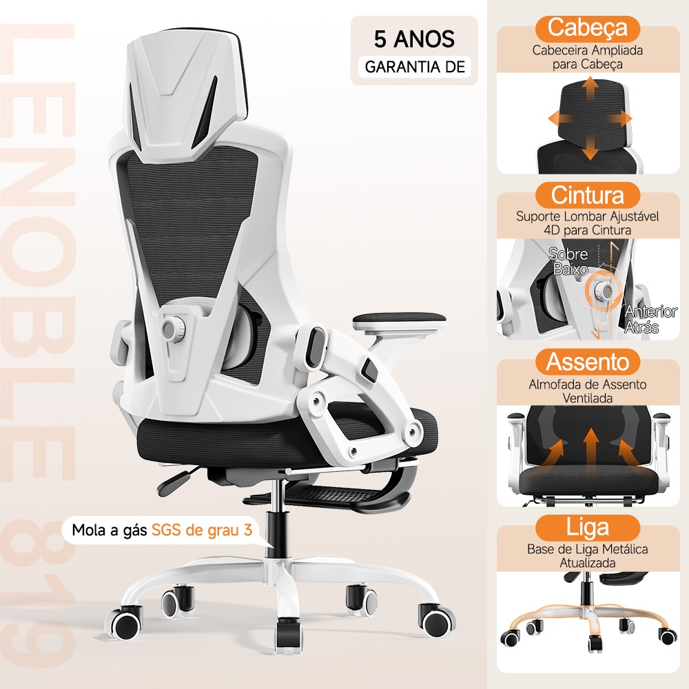 Cadeira Escritório Ergonômica Cadeira Gamer LENOBLE A819 Com Suporte Lombar Ajustável Inclinação e para Computador