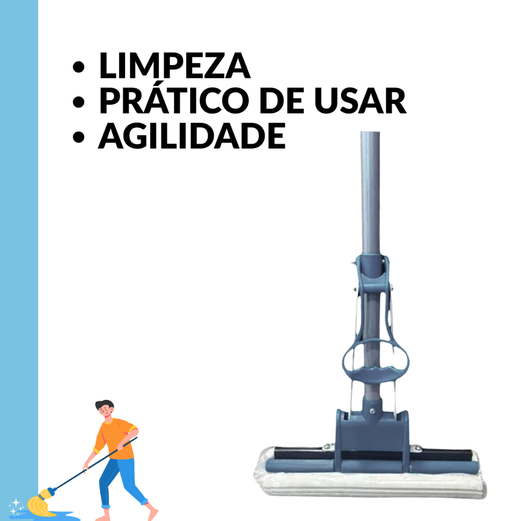 Kit Dois Rodo MOP Limpeza Casa Cozinha Seca Esfregão Resistente Prático Vassoura Escritório
